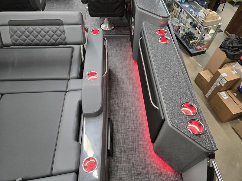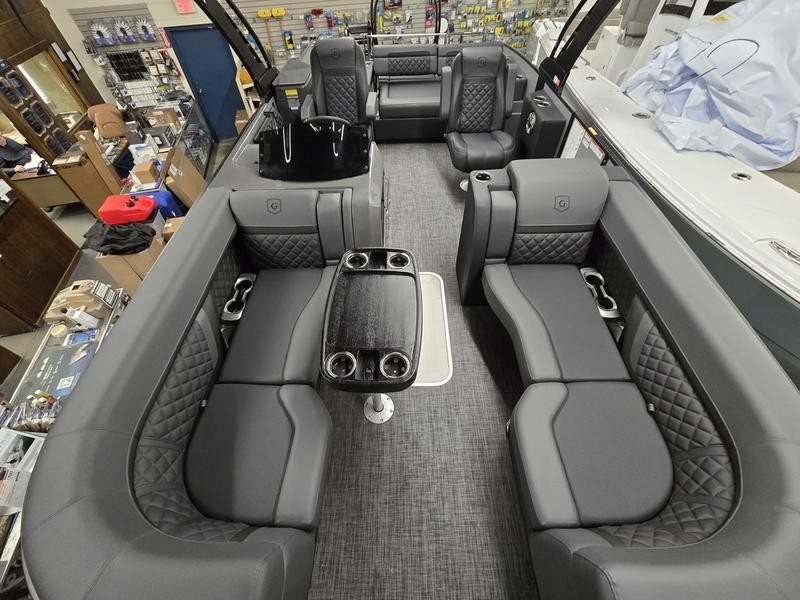 2026 Godfrey AquaPatio 235 DFLC iMPACT+ Tritoon w/ Yamaha F300XA and Tandem Tritoon Trailer. Options Include: Sport Wave Bimini Arch, Playpen Cover, Seat Covers, In Floor Storage, 25 Inch Transom, Scanstrut Integrated Air Station, Ultimate Ski Tow Bar, Silver Matte Railskins w/ Black Rails, Black Rub Rails, Onyx Cool Touch Flooring, Eclipse Cool Touch Soft Touch Vinyl, Dual Captain's Chairs w/ Quilted Accents, Teak Isle Trash Can, Adjustable Height Captains Chair, Cooled Cup Holder, Sport Windscreen, Upgraded JL Audio Stereo w/ Amp and 10" Sub, RGB Lighting, Back Porch Upgrade, Midnight Package, Power Assist Steering. Extended WARRANTY Available on the Yamaha! FINANCING AVAILABLE!! Call Sales Department at (804) 226-1111 More available Inventory at www.southeasternmarine.net