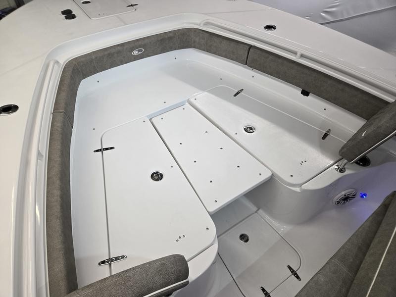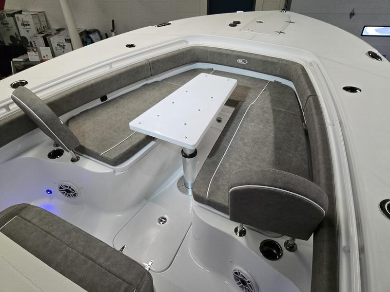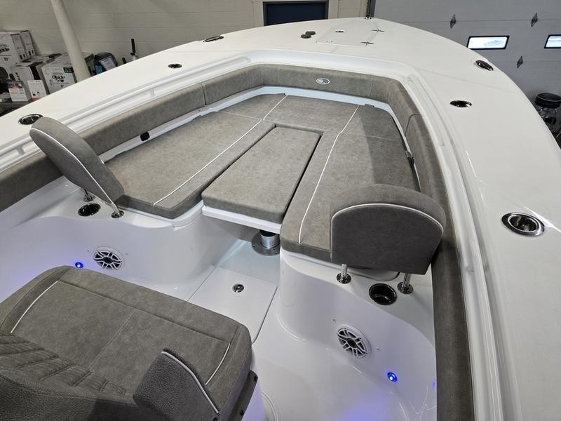 Comfort: Oversized bow area, cushioned rear bench seating, bow cushions, and backrests