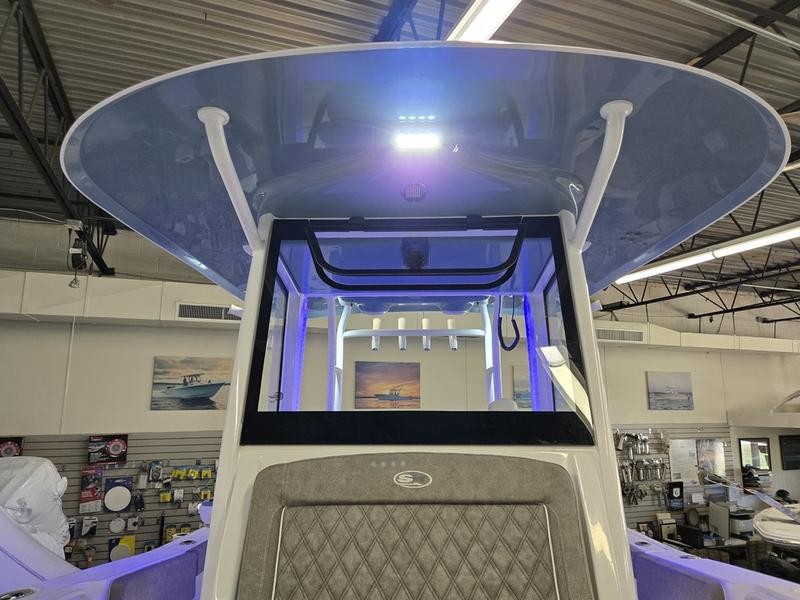 T-Top: Fiberglass T-Top with a mister system and underwater LED lights