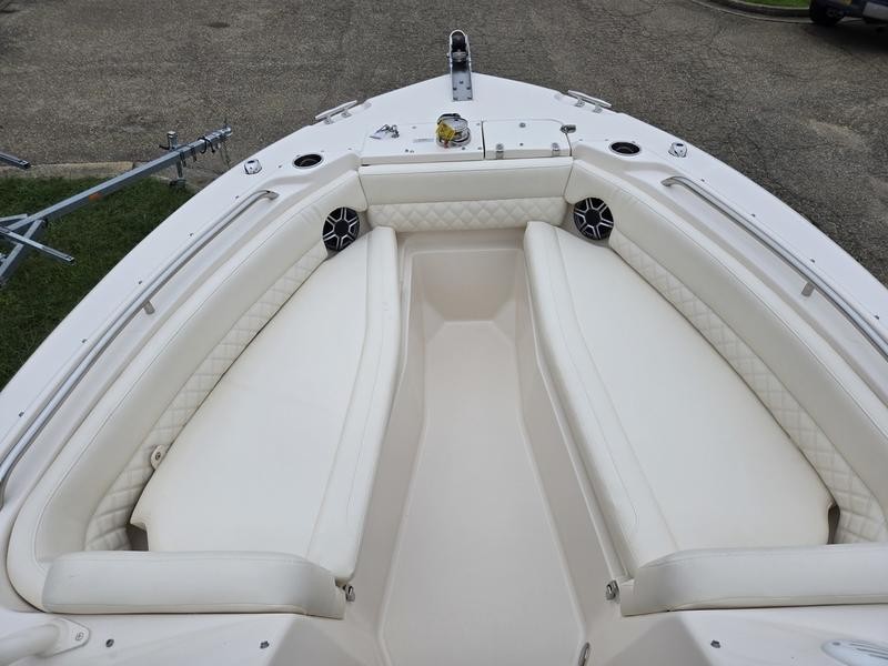A saltwater fishing and family cruiser, this unsinkable 25-foot dual console boat comes with deluxe seating and plenty of convenient storage for sport fishing gear, water toys, and picnic and camping equipment. You’ll get to offshore fishing grounds quickly and in comfort on the award-winning SeaV²® hull with the twin 200 Yamaha engine package, one of three options for this multi-purpose, best-in-class dual console fishing boat. Plus, a spacious enclosed head area assures all-day comfort and enjoyment.