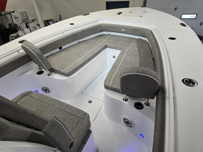 Comfort: Oversized bow area, cushioned rear bench seating, bow cushions, and backrests