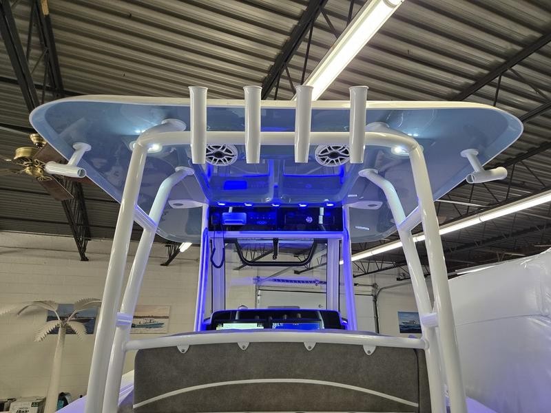 T-Top: Fiberglass T-Top with a mister system and underwater LED lights