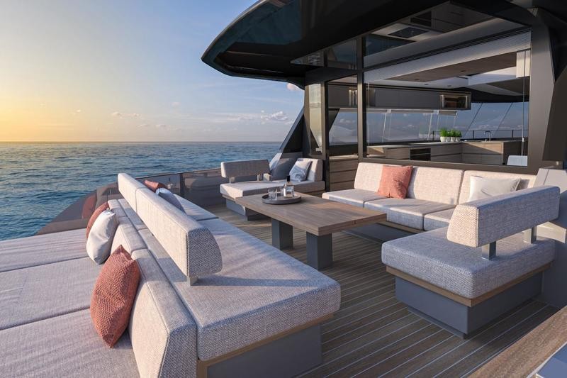 The Pardo GT65 project centers on the creation of livable and cozy interior spaces, ensuring maximum comfort while preserving an essential connection to the sea. Whether on deck or inside, expansive windows and retractable doors offer panoramic views, embodying the Pardo GT65’s dedication to freedom and openness towards the sea. This design philosophy places the owners at the forefront, allowing them to be the protagonists of their journey in uninterrupted contact with the marine environment.