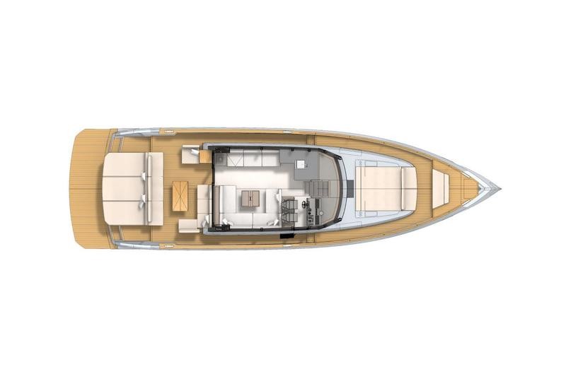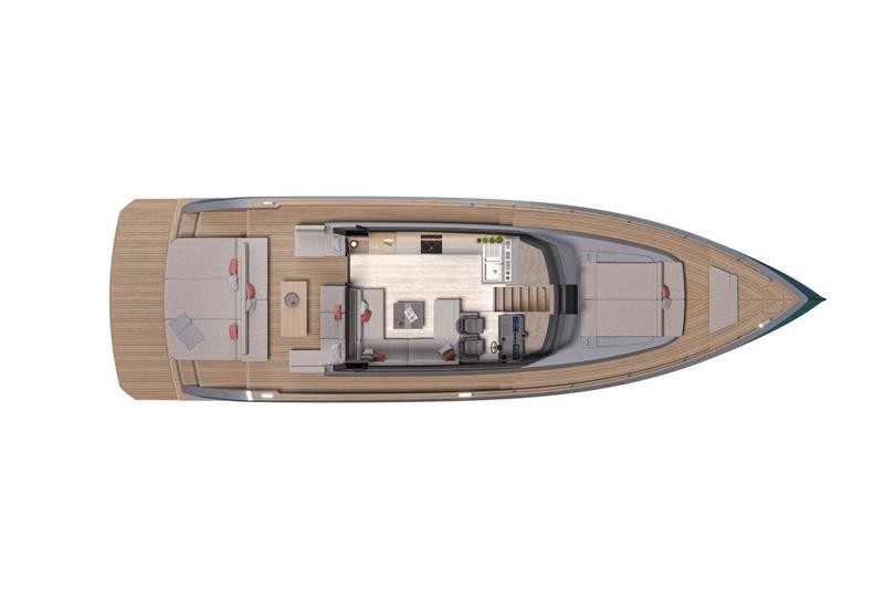 The Pardo GT65 profile is characterized by the distinctive reverse bow, an aesthetic hallmark of Pardo Yachts, and the naval architecture is the result of Zuccheri Yacht Design’s work. The technical specifications of the Pardo GT65 are still in development, but in terms of propulsion, we can already state that the most powerful version will be equipped with Volvo Penta IPS 1350 engines for maximum performance.