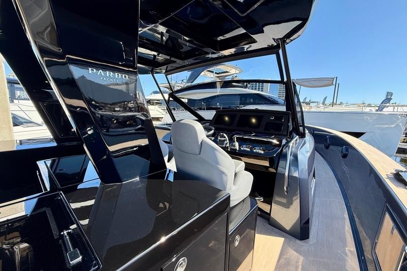 The walkaround philosophy expands across the 16 meters of the Pardo 50, embodying its maritime spirit in every detail and moment on board. Its sleek lines, iconic inverted bow, and raised bulwarks create a seamless design, integrating the bow sunpad, a spacious living area shaded by a 16-square-meter carbon fiber T-top, and the aft sunpad, which ... [read more]