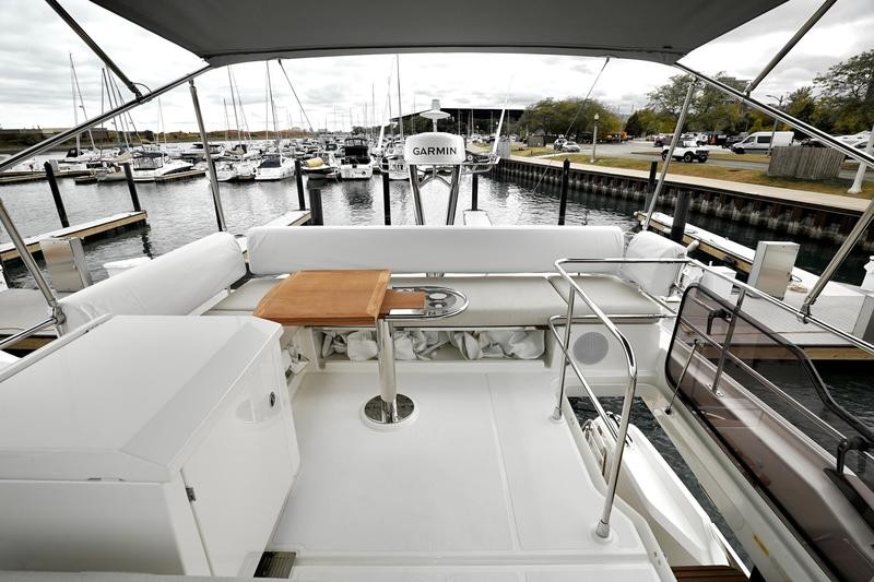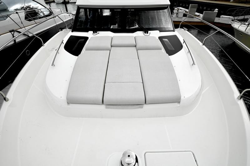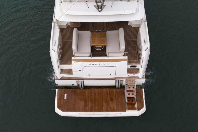 With its flush flooring and all-new OceanView galley, the epicenter of life on board, the F4.9 enables you to truly feel at home. The saloon features a soft, inviting atmosphere, and the sea is omnipresent, viewed from the helm station through panoramic sliding glass doors.