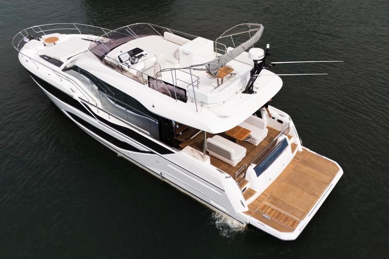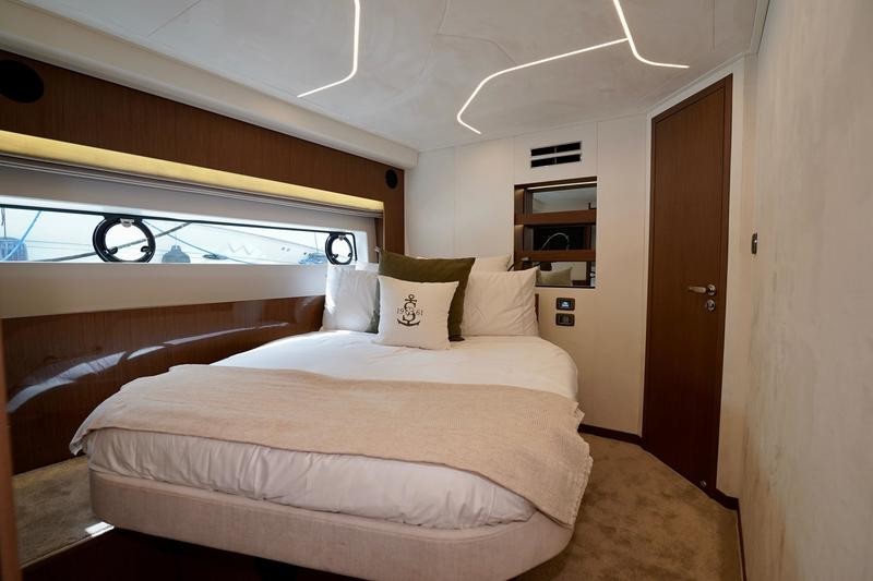 Designed to meet the needs and expectations of luxury yachting connoisseurs, the F5.7 elevates the experience of life on board. Living spaces are arranged to favor moments of sharing and connection, as well as preserving privacy. The gentle curves of her design and her refined fit and finish convey a connection to the sea and to nature, creating a soft, soothing atmosphere. Faithful to the generation of the F-Line, the F5.7 embraces cutting edge technology, offering owners a cruising experience with unequalled ease of handling.