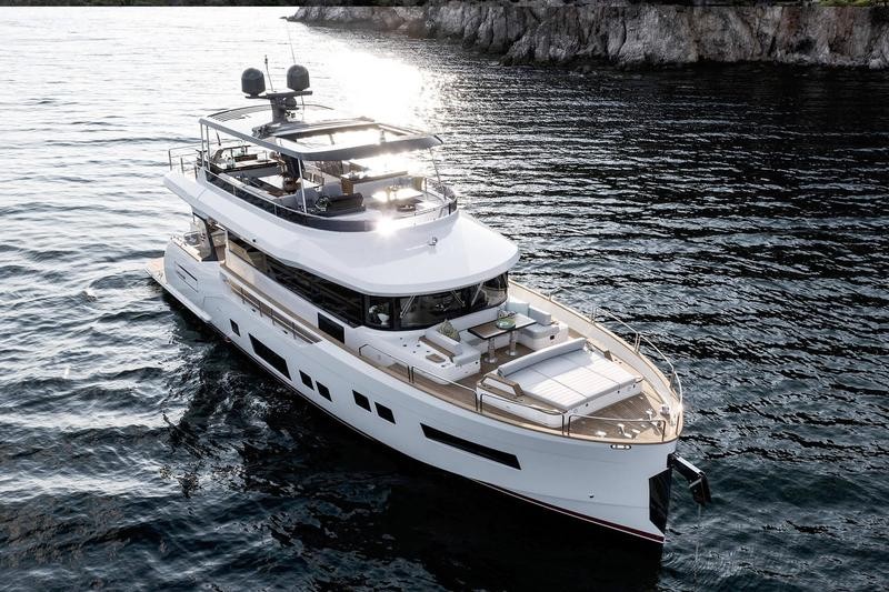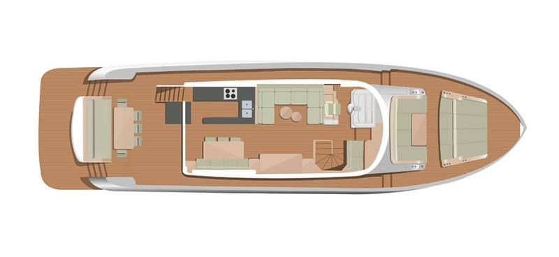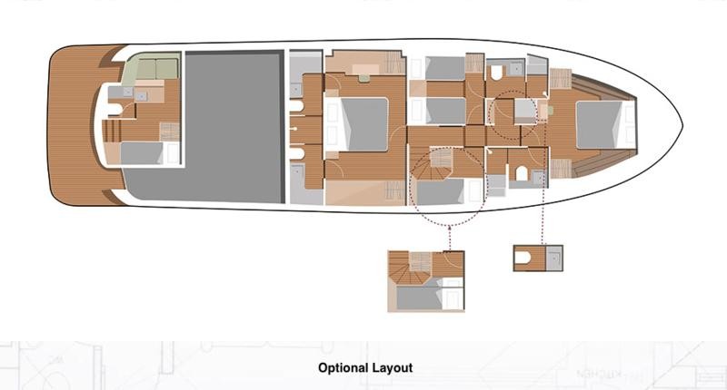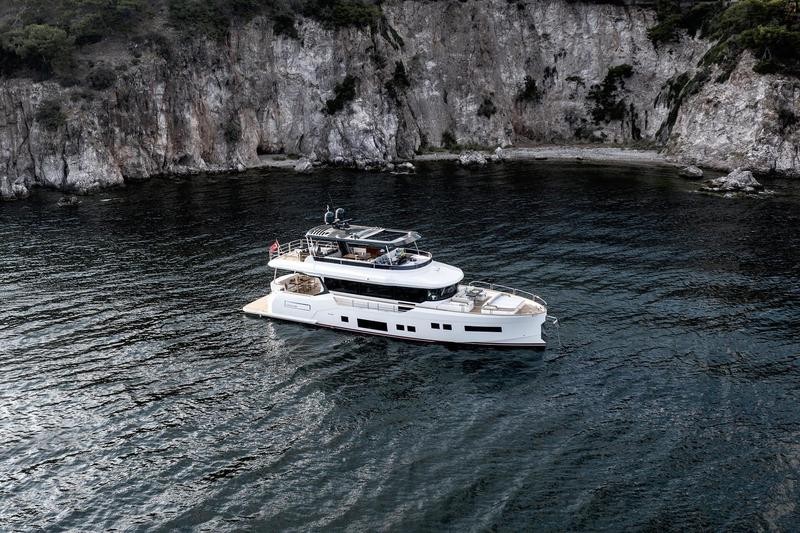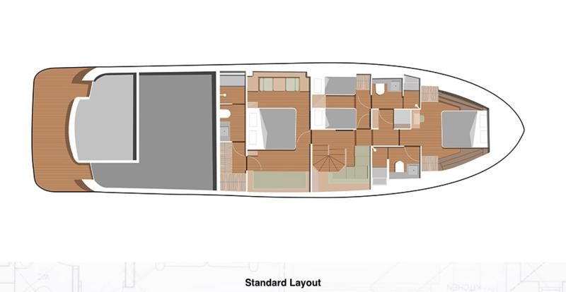 Like all Sirenas, the 68 incorporates the innovative German Frers hull design, which delivers world-class range by allowing displacement speeds for extended cruising. Optional power is expected to push the top speed of this semi-displacement hull to 29 knots.