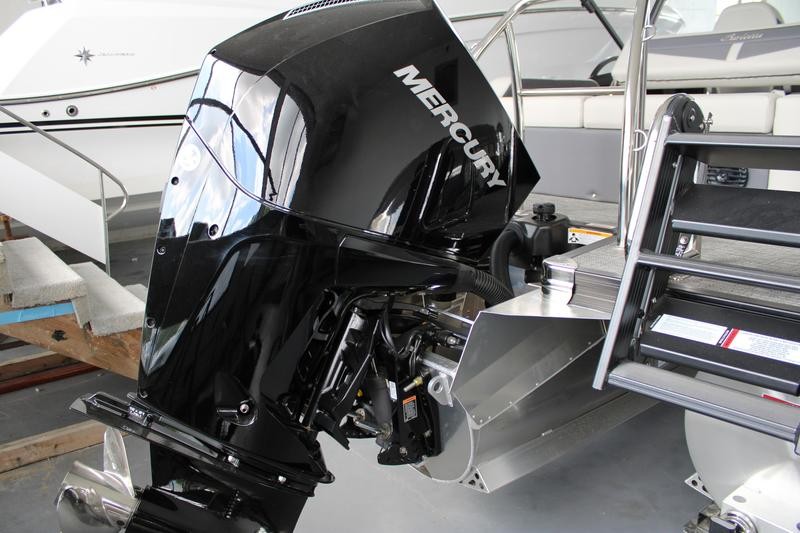 Upgrades include: Blackout Package, Cabrio Triple Toon Package, Enhanced Metal Jacket Protectant, Power Assist Steering, Stainless Steel Prop, Stainless Steel Flag Pole, Exterior White Lighting and 7in Simrad Multifunction Display