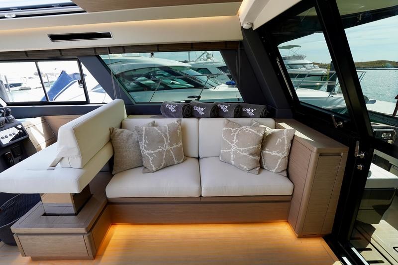 Space, luminosity, elegance and comfort. The innovative concept of the Pardo GT stems from an idea to create a convivial boat that could best connect the interior (the sheltered area) with the exterior. The boat features innovative solutions that maximize the comfort of life on board and the ease of use in every moment of the nautical routine.