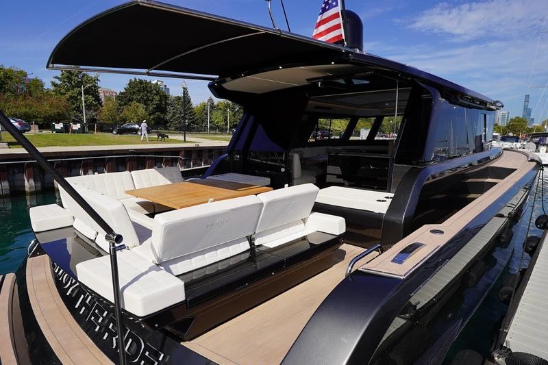 This boat was custom ordered and only used around Chicago. It has less then 200 hours, a great color package, all the options you could want, and maintained with an open checkbook. To boat stands out in any marina or at any anchorage. It entertains well, performs well, and is an absolute head turner.
