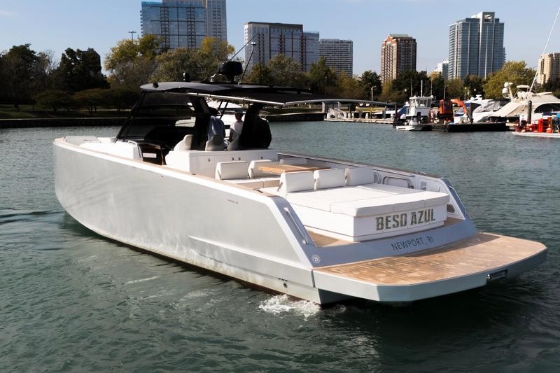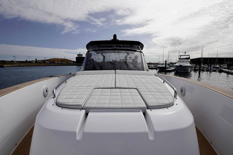 Powered by twin Volvo IPS 650 D6 engines, each producing 480 horsepower, the boat delivers smooth handling and consistent power. The Walkaround’s open layout provides generous deck space, making it versatile for both entertaining and day cruising. Its design emphasizes functionality, comfort, and ease of movement throughout the vessel.