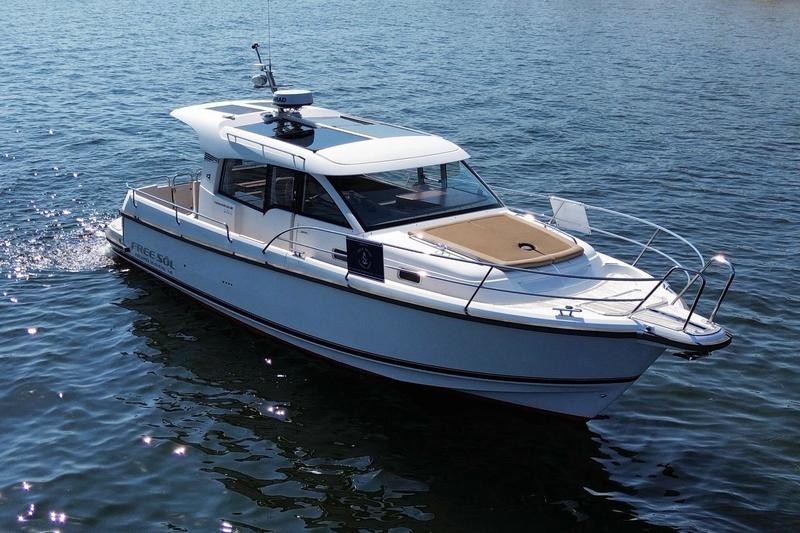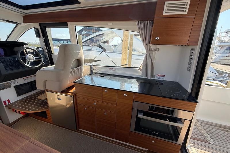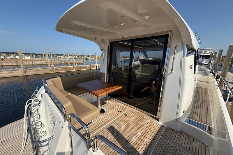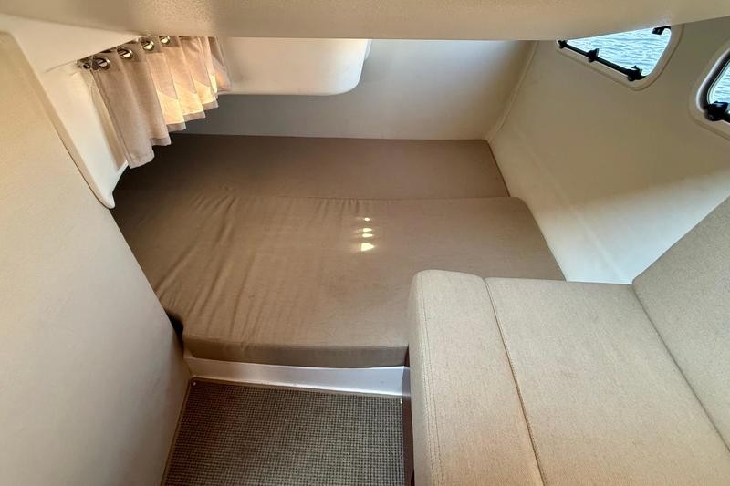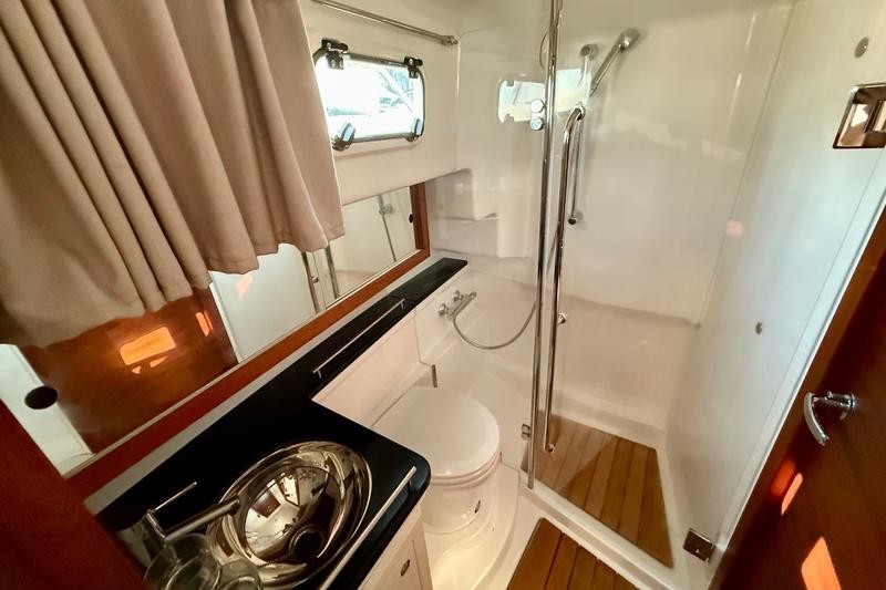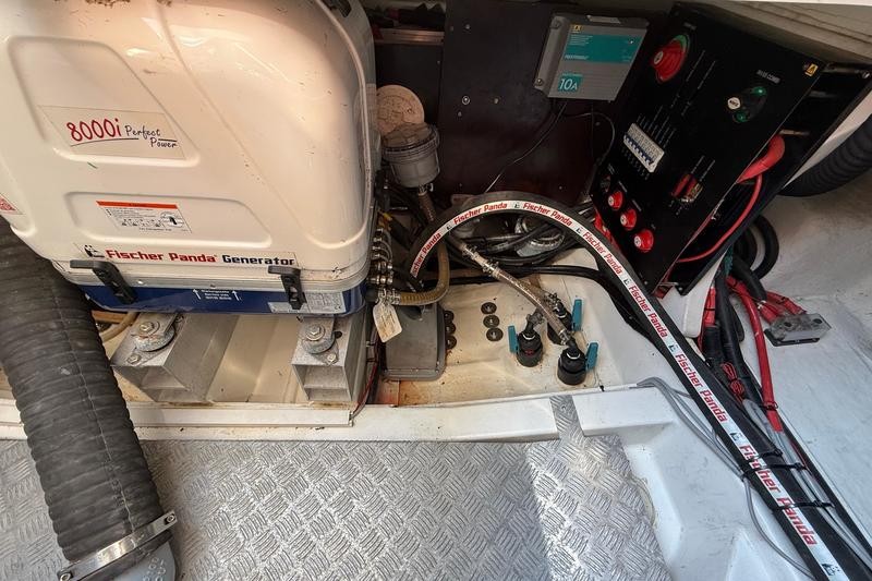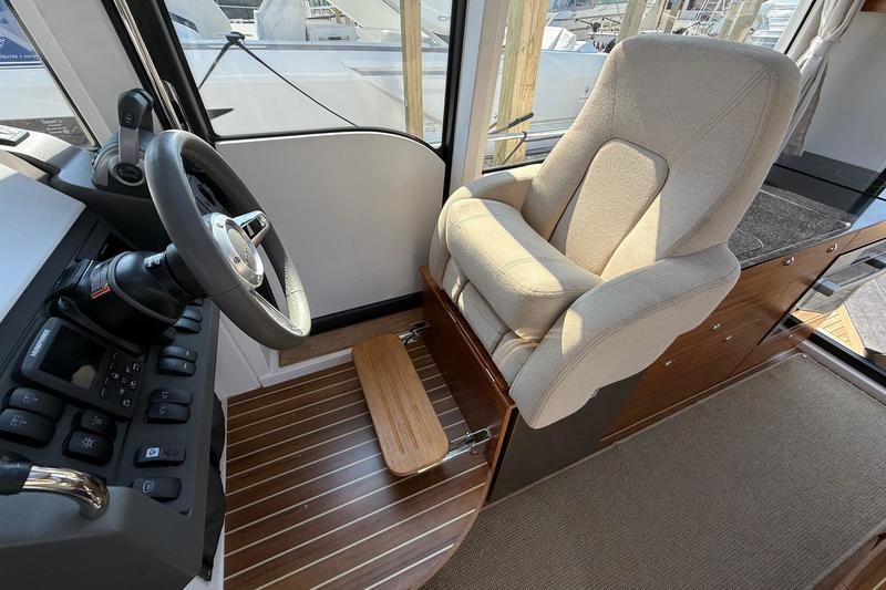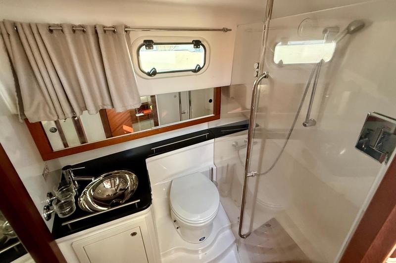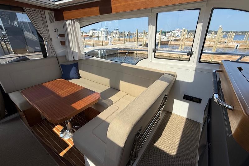 Comfort is prioritized with a diesel heater/defroster, hot water system, electric toilet with pump-out, LED lighting, and electric roof hatches. Bow and stern thrusters with remote control, trim tabs, a bow ladder, and a full mooring package make handling smooth and simple. Added features like a sunshade canopy set, solar energy system, diesel generator, air conditioning in multiple zones, and advanced Humphree Interceptors ensure every journey is as relaxing as it is refined.