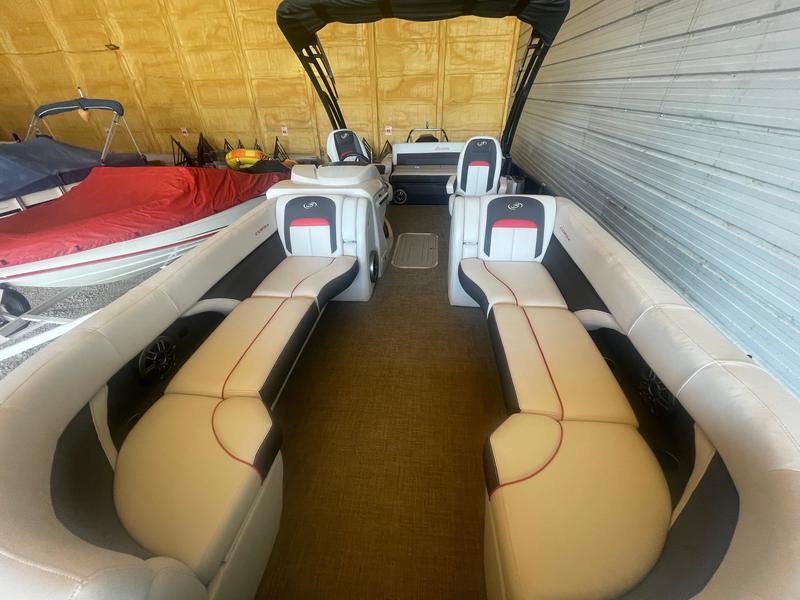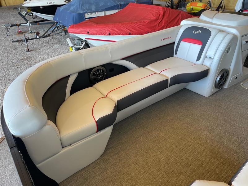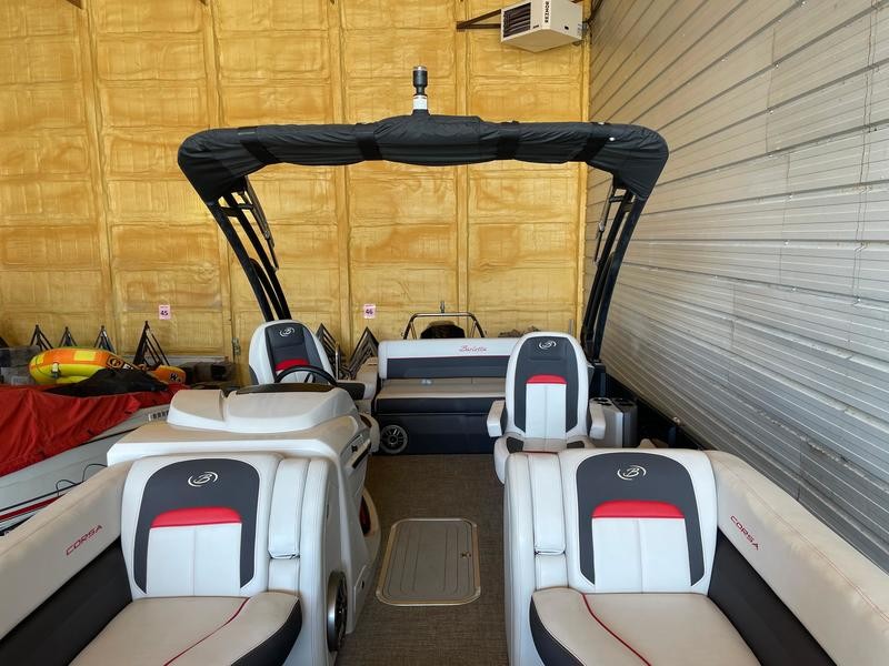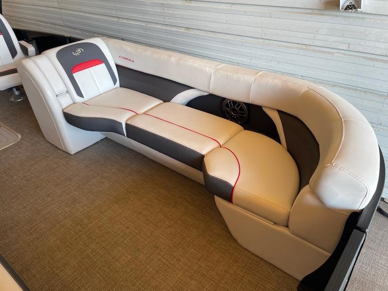 Built for those who want everything that makes Barletta great, with a sporty, aggressive stance. Sleek exterior lines with a muscle-car feel, chrome badging, the best helm in its class, and interior furniture featuring three interior accents to add the perfect pop of color, creates an upgraded experience at an astonishing price point. You’ll be the leader of the pack no matter what body of water you call home.