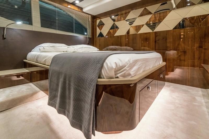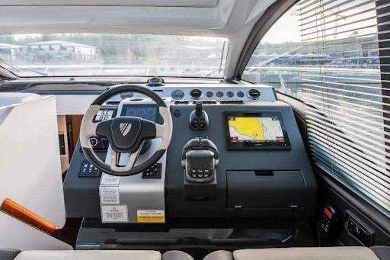 Features include; Upgraded Engine Package plus Generator, High Capacity Air Conditioning and Heat with A/C to Helm and Companion Seating, Screen Demisting System, Anchor Package: Stainless Steel, Chain Counter & Bow Plate, Appliance Pack: Ceramic Cockpit Bar, Grill & Refrigerator, Entertainment Pack: TV's in Master, Guestroom & Salon, Fusion Amp and Subwoofer to Cockpit, Folding Teak Cockpit Table with Cantilever Arm, Fridge to Sideboard & Electric Grill, Garmin GMR 24 x HD Radome 4KW, Volvo GPS Map8612V (12") with Volvo Helm Management, Hydraulic Submersible Swim Platform, Garage Fitout: Hydraulic Winch and Rollers, Blue or White Mood Lights to Exterior Plus Underwater Lights, Interior Mood Lighting Package, SeaKeeper 3 Gyroscopic Stabilizer, Movida Ice Bow Cushions, White Cockpit Cover, Cabin Carpets in Lush Linear Grey, Winter White Upgraded Leather Salon Seating, Leather Seating Upgrade In Master Cabin, Internally Sprung Mattresses with Fairline Luxury Bedding Set