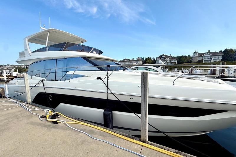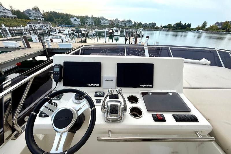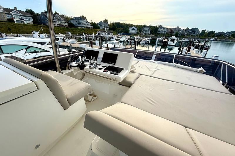 The Prestige 590 is designed for owners who want maximum comfort without needing a professional crew. At just over 60 feet, she offers the space and luxury of a true motor yacht, while remaining manageable by a couple thanks in part to joystick docking and thoughtfully placed controls. This particular Prestige has 150 original hours and gives you big-yacht presence and comfort in a size that is still practical, dockable, and fun to own/operate.