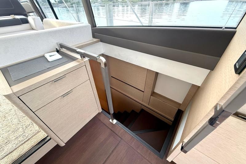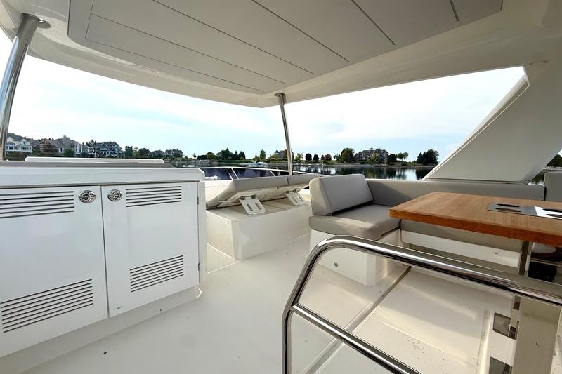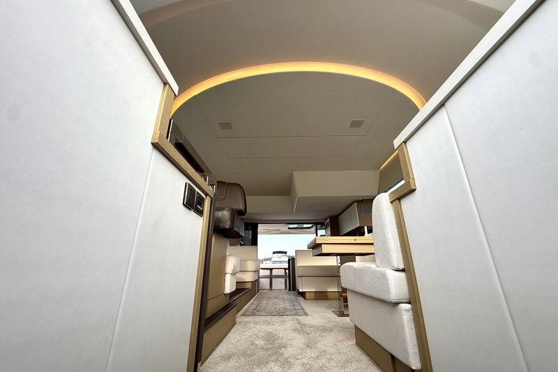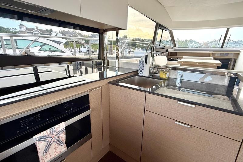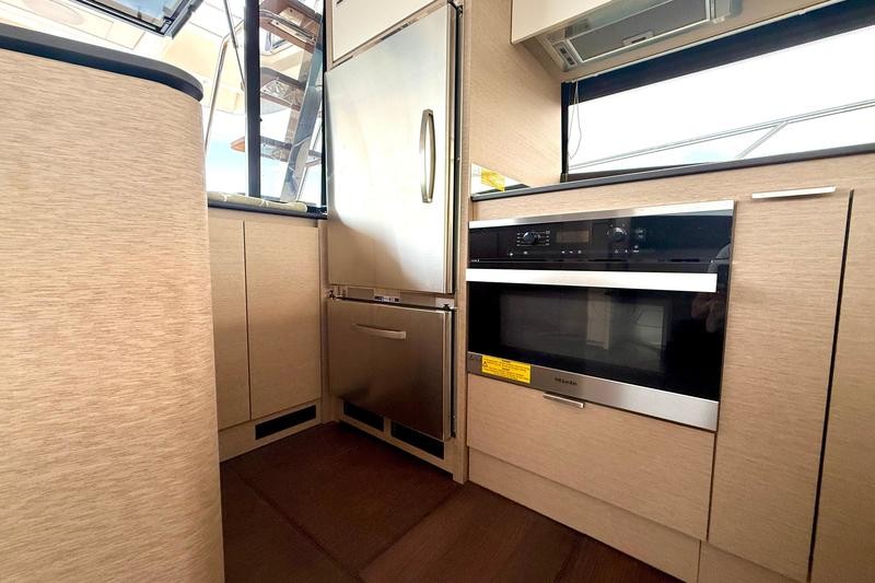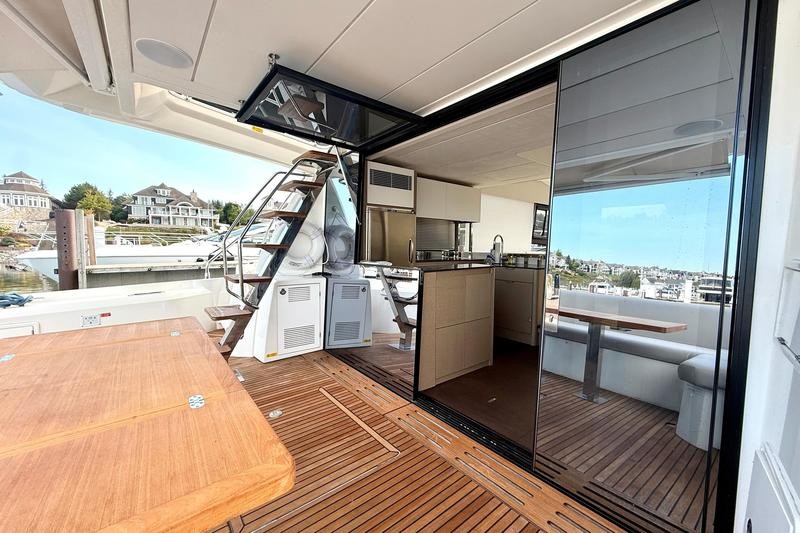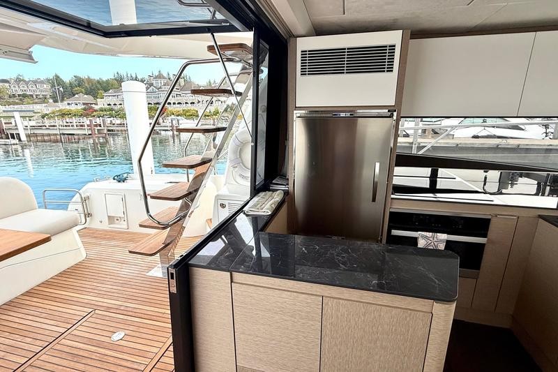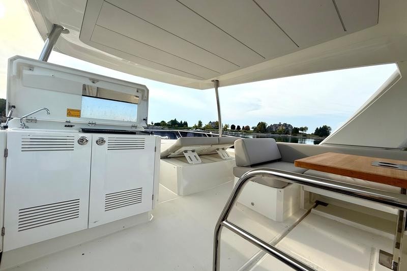 Lifestyle Flexibility: The aft-Galley flows seamlessly into the cockpit, making entertaining effortless, while the flybridge and foredeck lounges double your outdoor living spaces.