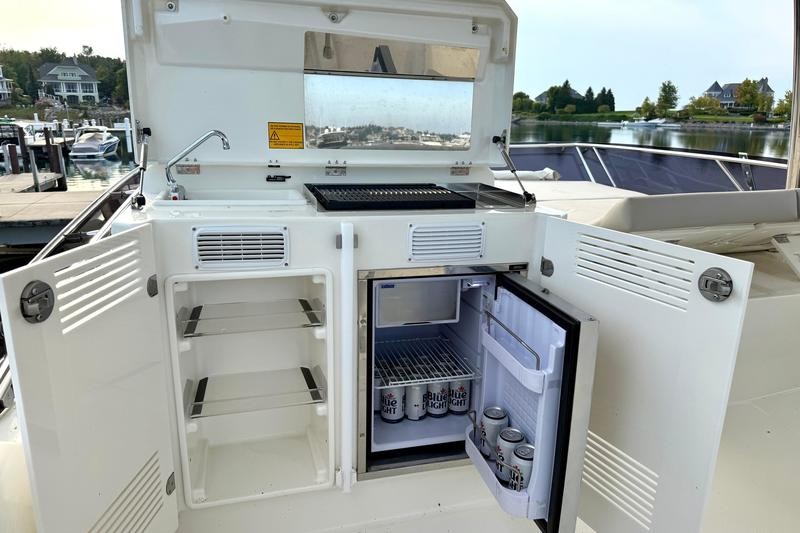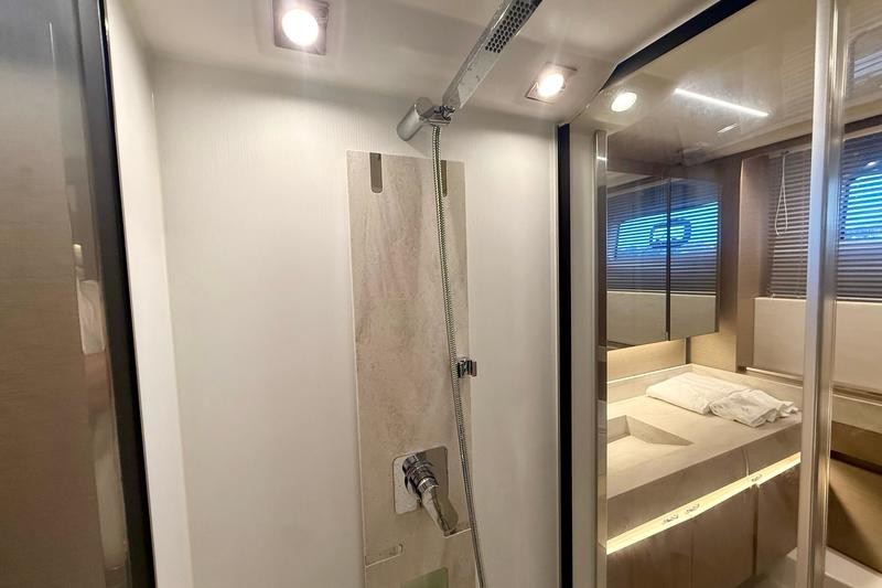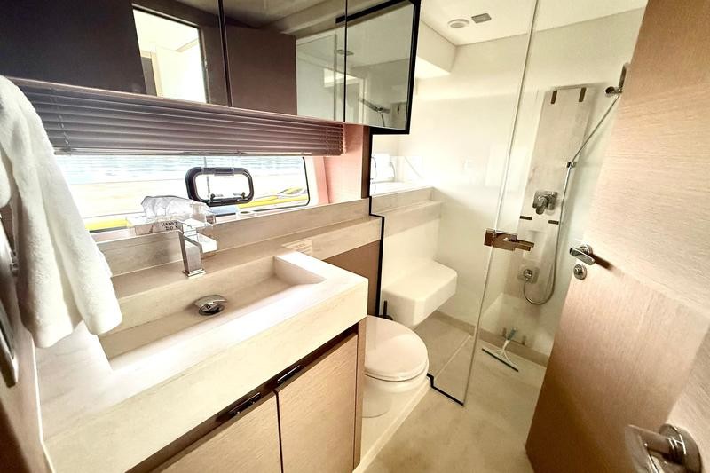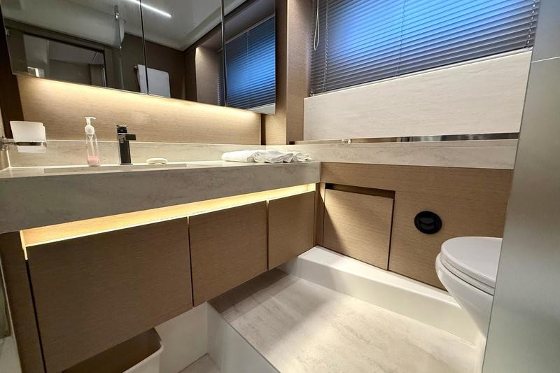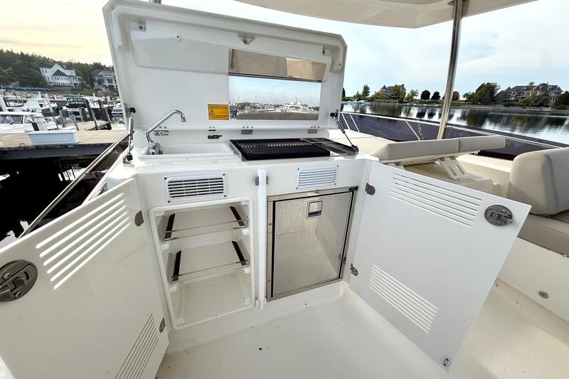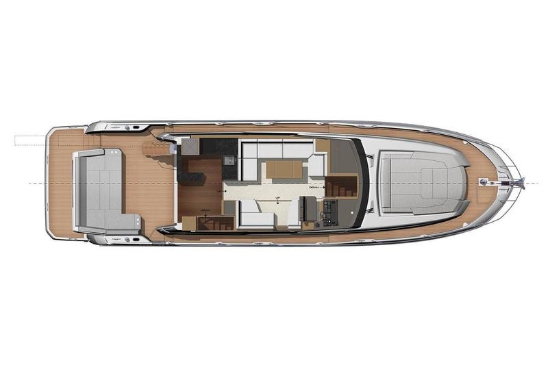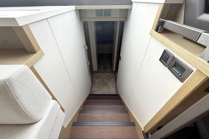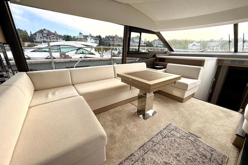 Lifestyle Flexibility: The aft-Galley flows seamlessly into the cockpit, making entertaining effortless, while the flybridge and foredeck lounges double your outdoor living spaces.