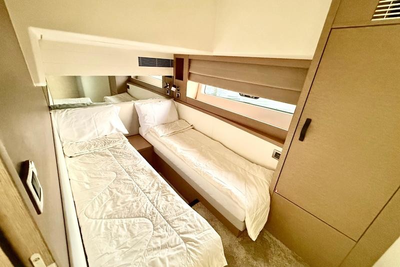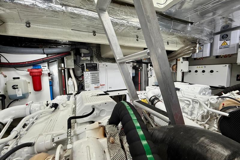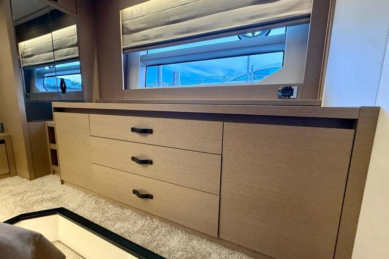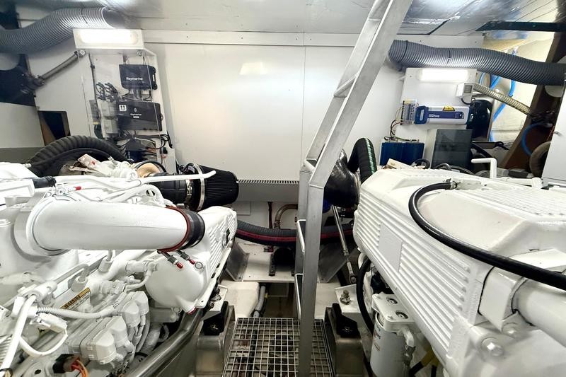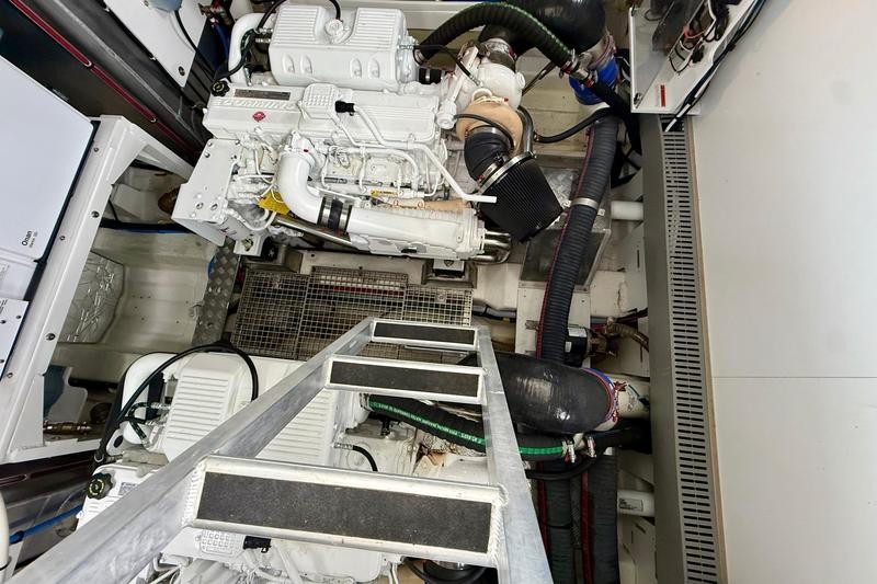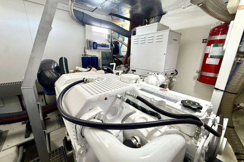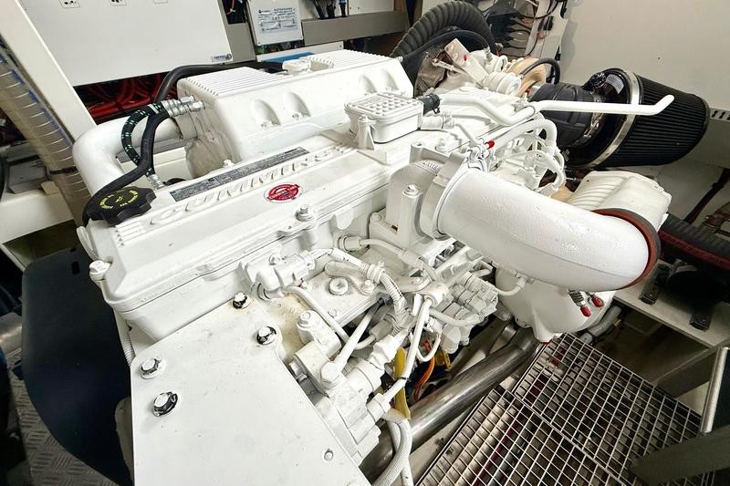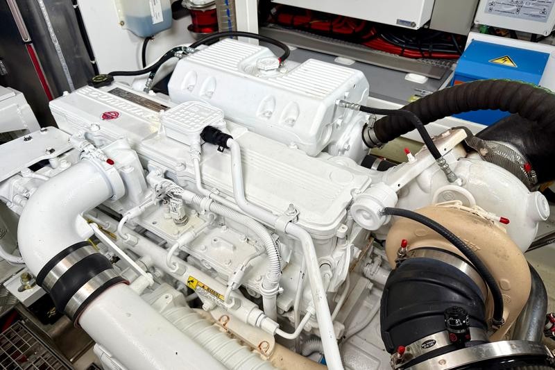 Comfort at Sea: A proven Prestige hull, wide chines for stability, powerful Cummins 8.3 600 X2 (150 original hours) deliver a quiet, smooth ride