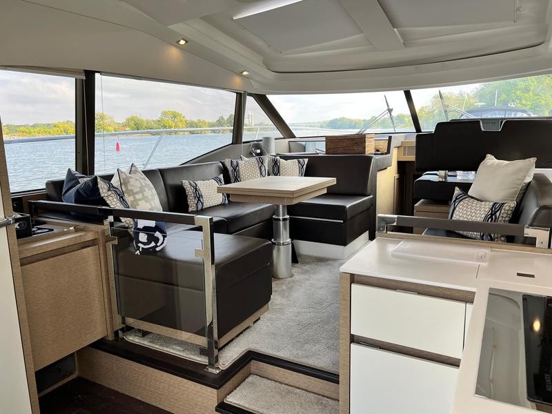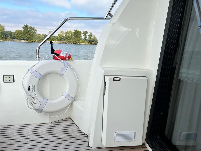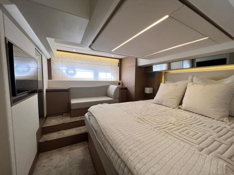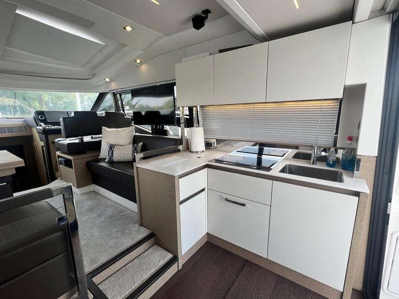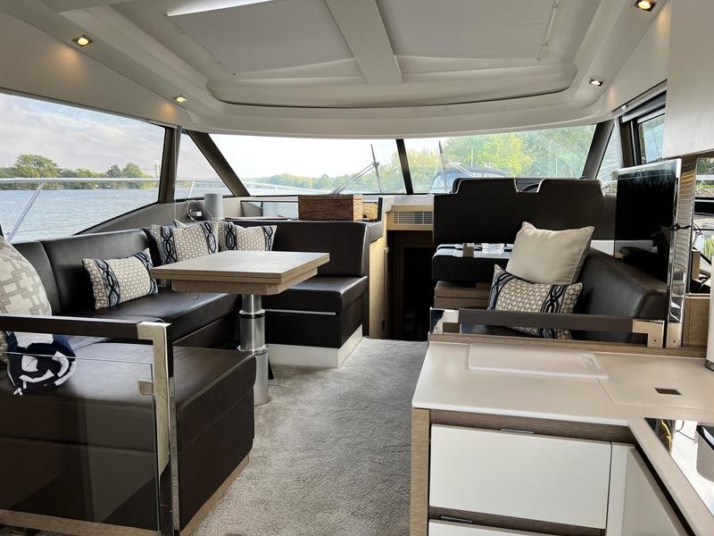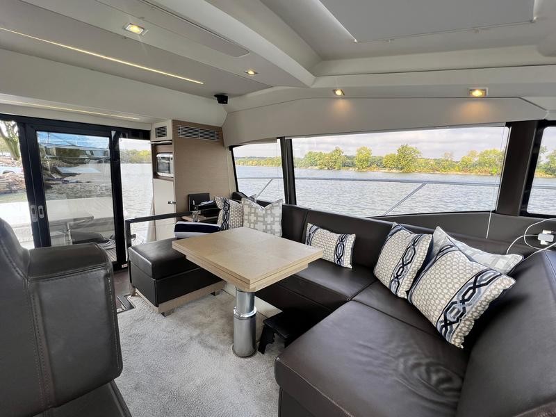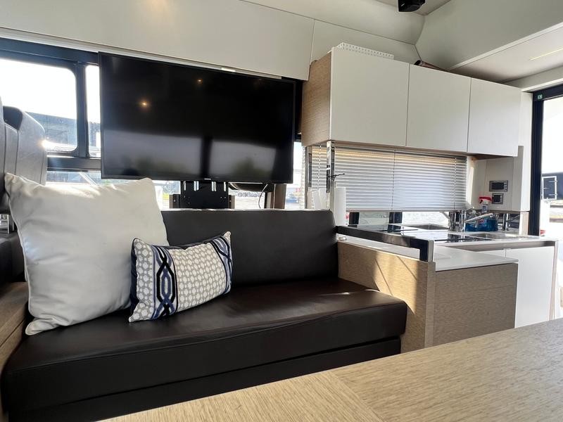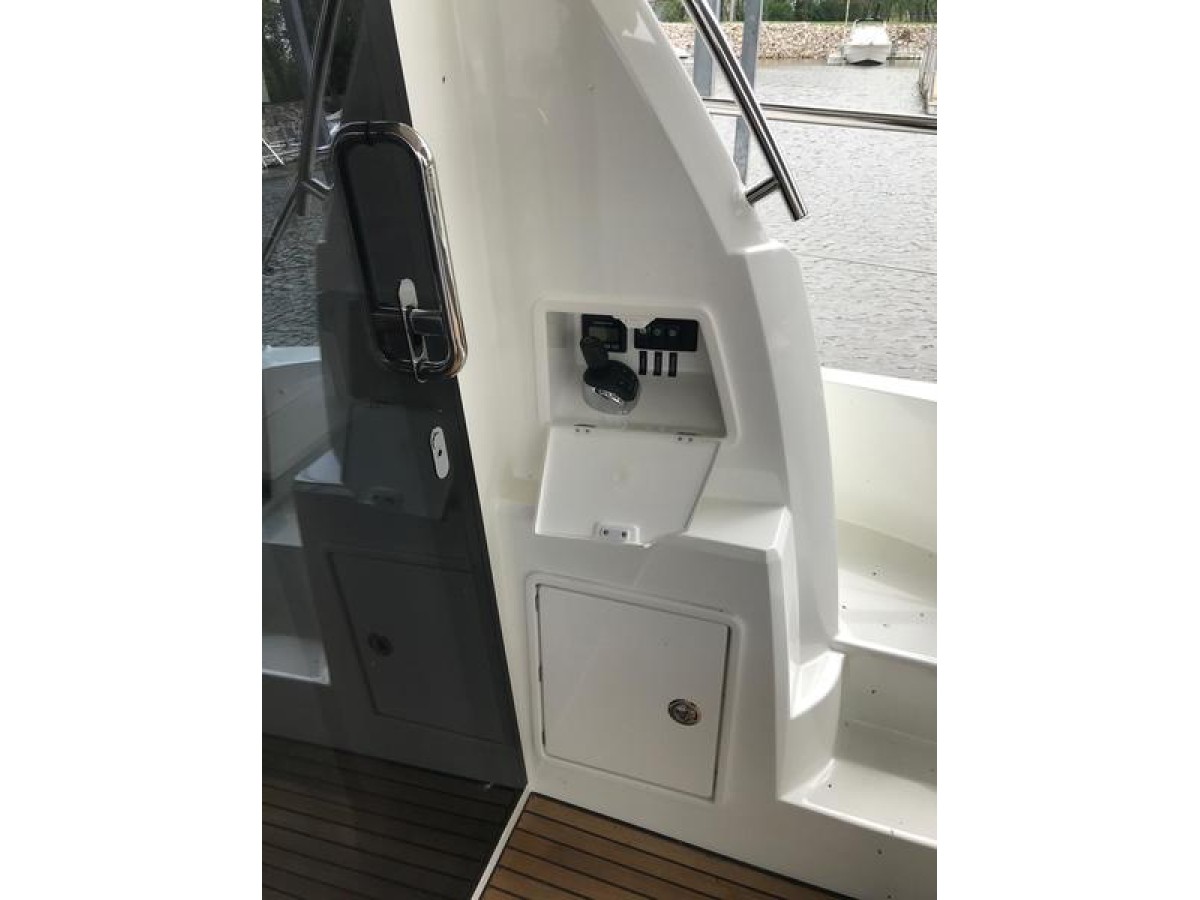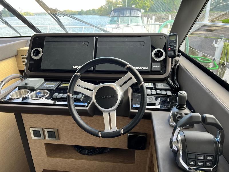 Grey Oak Interior Wood, Devon Choco Leather Upholstery Upgrade, Windlass With Anchoring Package, Cockpit Electric Retractable Sun Awning, Hydraulic Swim Platform, 60,000 BTU Air Conditioning With Heat, Excellence Trim Package, Bow Sun Lounge With Bimini And Cover, Cockpit Bench Seat With Teak Table And Cover, Glendinning Shore Power Cable System, Salon Starboard Electric Window, Galley Vitroceramic Cook Top, Galley Microwave Oven, Salon Bose "Acoustimass 3" Stereo System, Electric Trim Tabs, Raymarine Electronics Package, 2 Axium 12" Multifunction Displays, Quantum Radar, GPS, IPS Autopilot, VHF Radio, Volvo Engine Interface, 13.5KW Generator, Underwater Lighting Package, Remote Spotlight, Aft Deck LED Spotlights, Ice Maker, Washer Dryer Combo Unit, Central Vacuum System, Forward And Aft Cabin Mattress Battens, Salon And Stateroom Carpet, Cockpit Second IPS Joystick Control, Cockpit Bose Watertight Speakers, Custom "Wenge" Salon Flooring, Salon And Stateroom TV / DVD Package, Extra Stern Mooring Cleats, Owners Manuals Kit, Stainless Steel Bow Protector Plate, Swim Platform And Cockpit Teak Decking, Quiet Flush Heads, Galley Refrigerator / Freezer, Pressure Water System, Hot Water Heater, Automatic Fire Suppression System, Bilge Pump With Alarm, Carbon Monoxide Detector, Compass, Battery Charger, LED Courtesy Lighting Package, Shore Water Connection, Bottom Paint