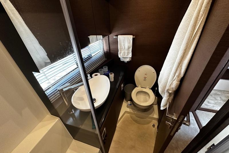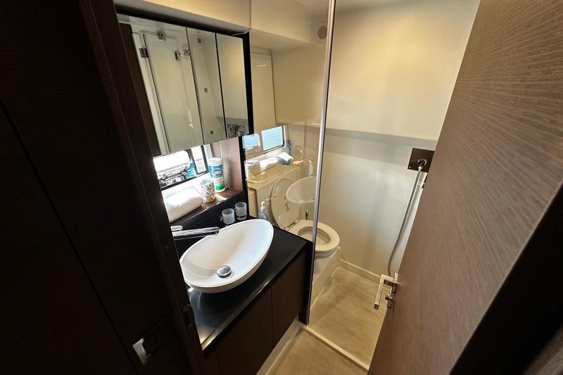 Layout: Two luxurious staterooms with en suites, full-beam master, bright salon with panoramic windows, aft galley opening to the cockpit.