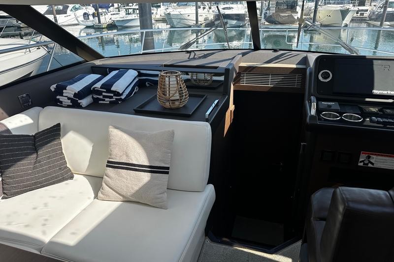 Delivered new by our team in 2018 and stored with us since day one, this boat has had only one owner and has been cared for to the highest standards. The 460 Coupé is known for blending performance, comfort, and sleek styling—offering an ideal layout for entertaining on the Great Lakes or cruising farther afield.