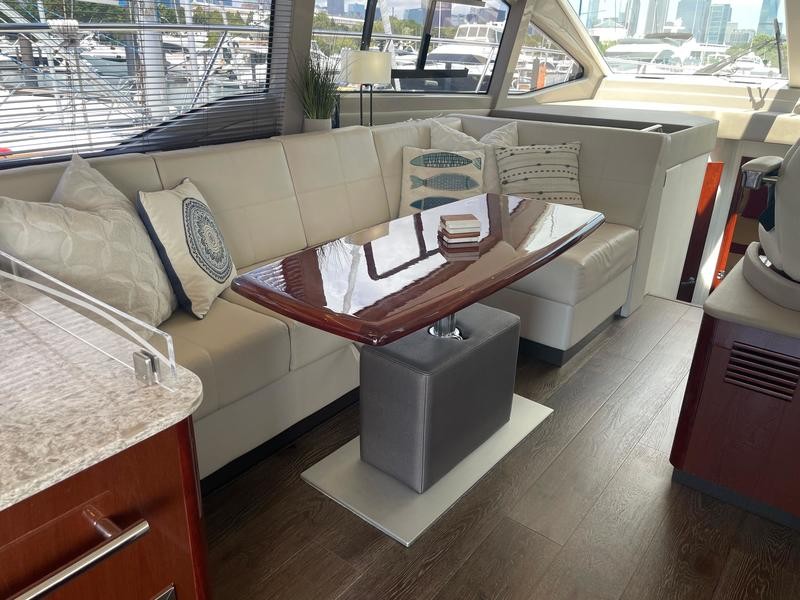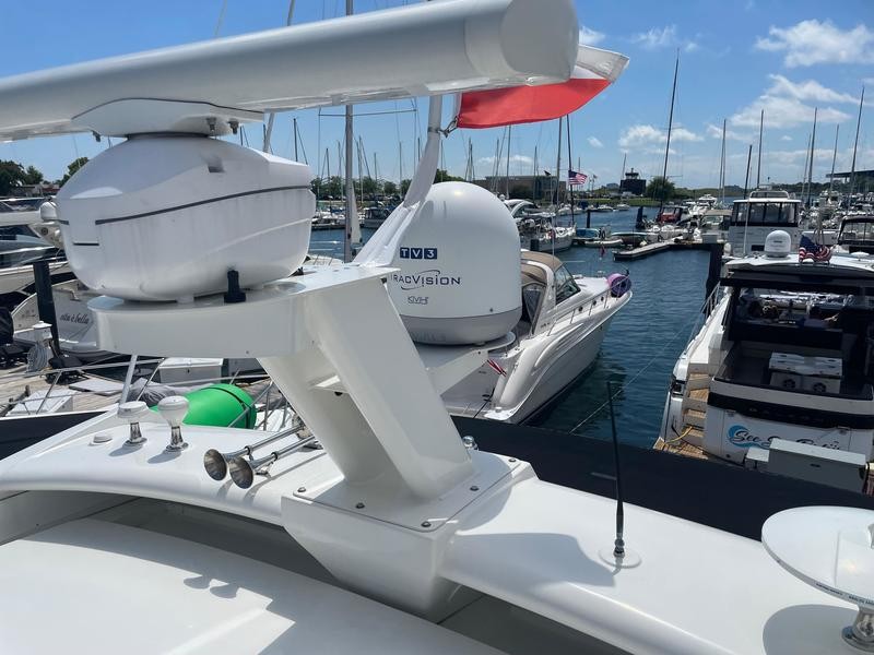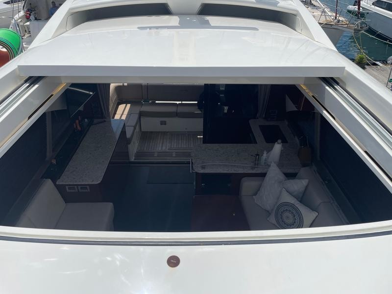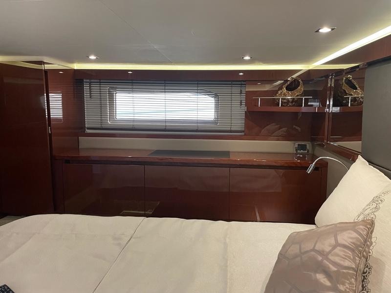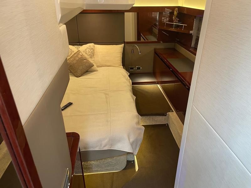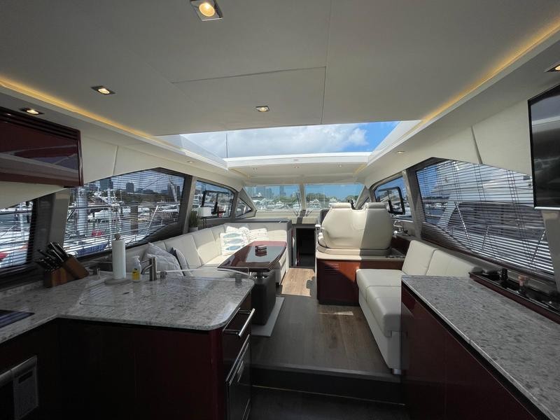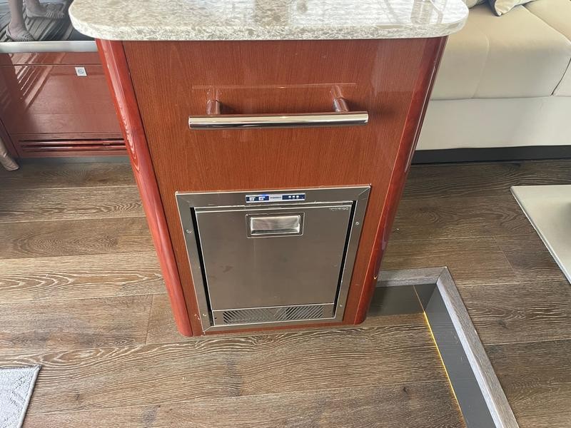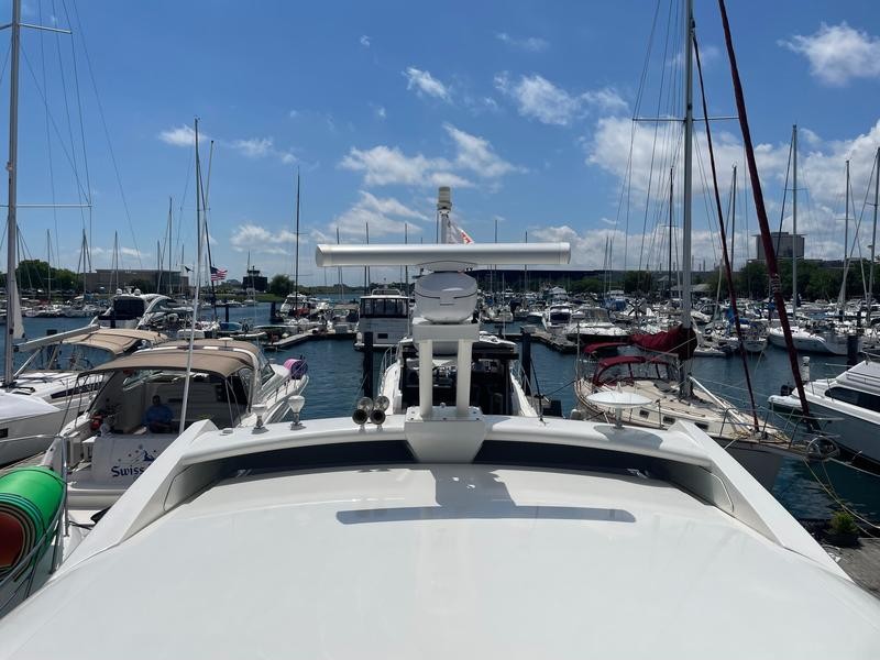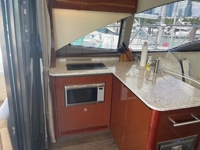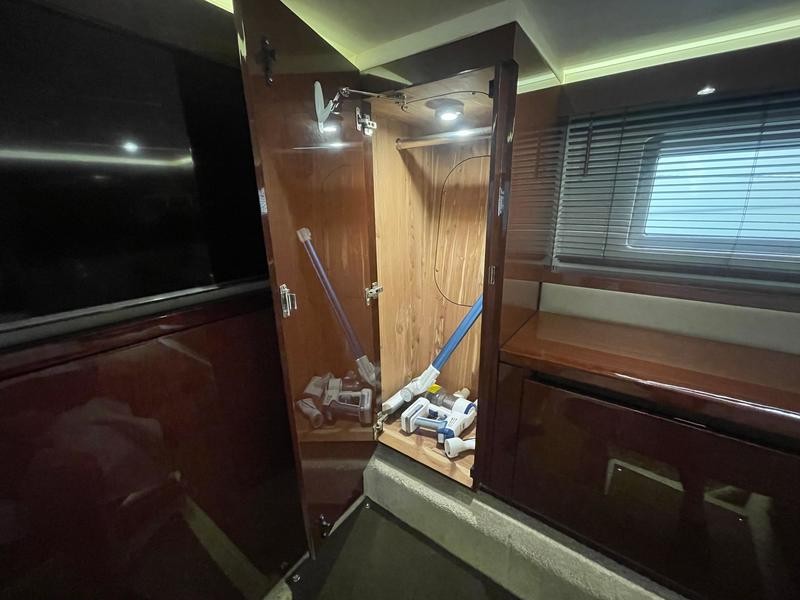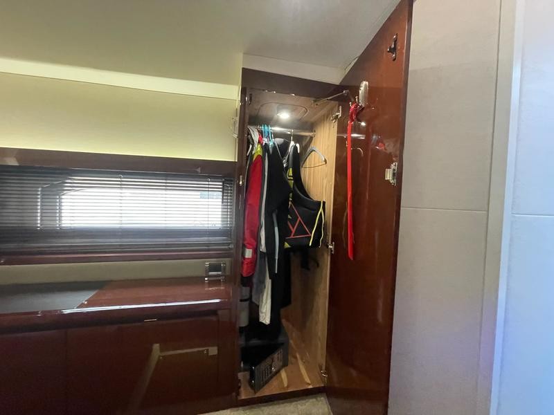 "My Time" is a true example of pride of ownership! This Sea Ray is now for sale by the second owners who have put 80% of the current hours on the engines (690). This Sea Ray is loaded with all the options one could want Twin 550 Hp Cummins Zeus pods feature a joystick docking system that has auto grated Sky Hook and autopilot. The Teak Hydraulic Swim platform includes both options to carry a tender or be the perfect teak beach with integrated steps. There is also a grill and sink located in the beach galley, the perfect spot to grill up some food while anchored in your favorite cove. As you step up into the cockpit there is ample seating with a moveable aft seat for even more leg room. The port side galley is spacious with plenty of storage for extended trips and all the expect amenities. The Salon is immersed in natural lighting by the large windows all around and a full sunroof. Seating to port and starboard offer enough space for all family and friends to find a comfy spot. The well laid out helm features twin Raymarine touch screens and easy to understand switches. As you head down into the staterooms you'll notice the atrium style entrance. Forward is the VIP stateroom with a full queen and the option to split the bed for twins. The day head features a full standing shower with a jacket and jill entrance between the VIP stateroom and hallway. To port you will find the wrap around entrance into a full beamer master stateroom with a full ensuite head. Twin hanging lockers fitted with cedar wood offer enough space for clothing with even more drawer storage. Tucked under the master tv you'll find a washer/dryer unit. The bow features large sun pad with a snap cover.