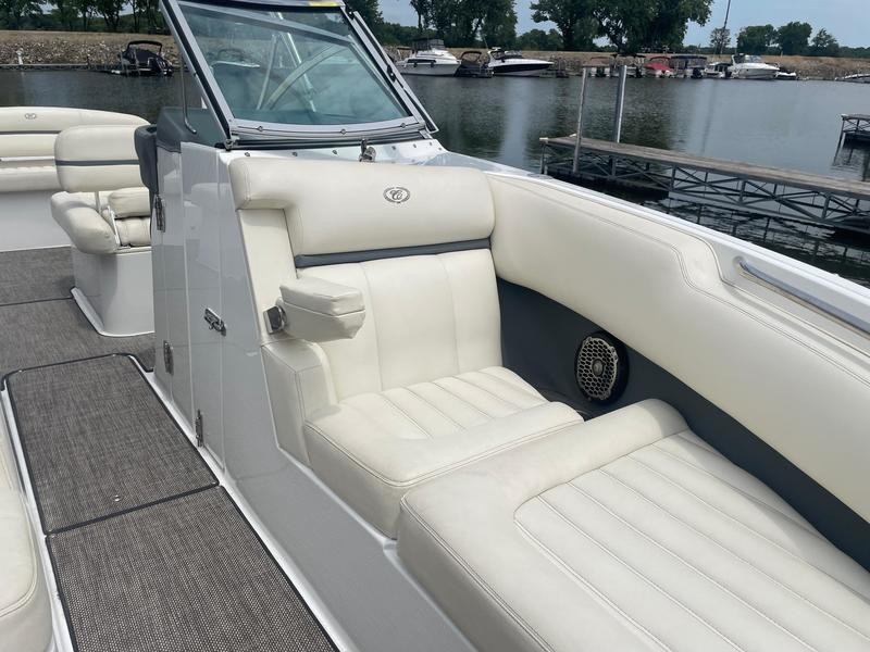 Today’s boating public demands a lot from its bowriders. In the R7, Cobalt Boats delivers a top quality boat that can meet those demands of size and spaciousness, performance and versatility. With a 50 mph top speed and the ability to climb onto plane in four seconds and to hit 30 mph in 7.3 seconds, the R7 has the performance bases covered.