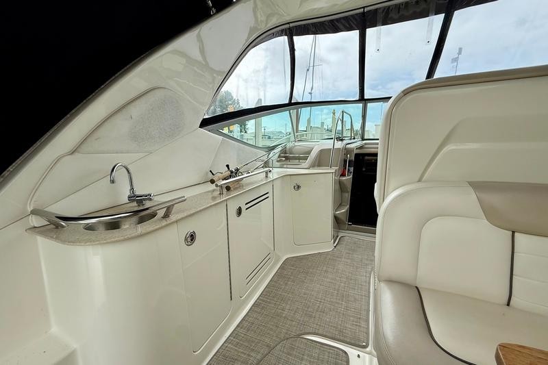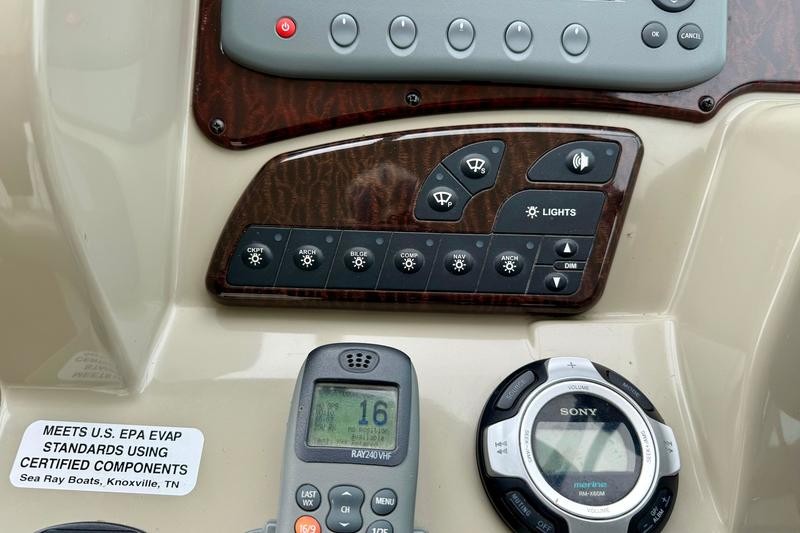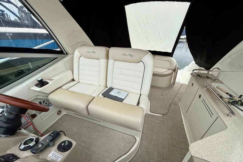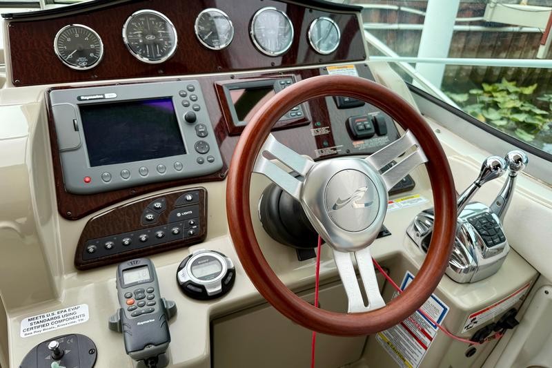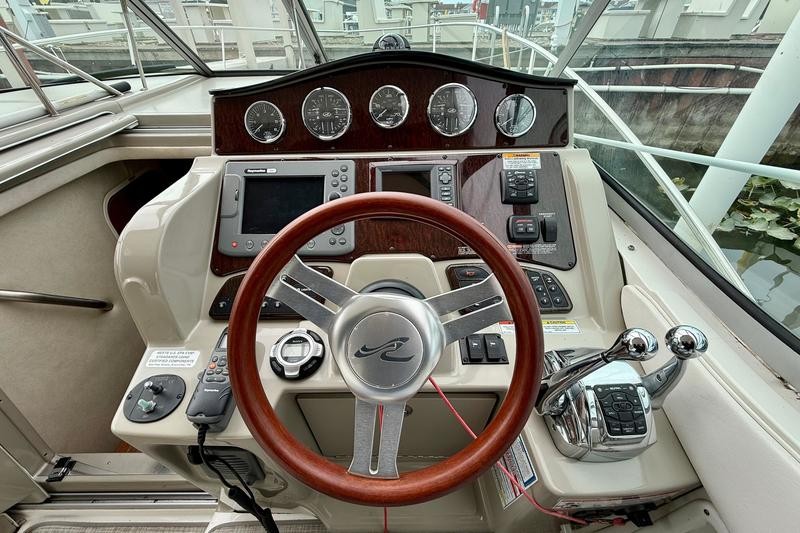 The Sea Ray 330 Sundancer is one of the most sought-after express cruisers in her class, offering a perfect balance of performance, luxury, and comfort. With her sleek styling, spacious cockpit, and well-appointed cabin, this Sundancer is ideal for weekend getaways, entertaining on the water, or extended cruising. This Sundancer is equipped with twin 350 MAG MPI Axius mains with Bravo 3 DTS transmissions controlled by both sticks and joystick - Making maneuvering a breeze and docking the easiest part of your cruise. The carpet in the cockpit is relatively new at 2 years old and is completely removable by snaps. Overall, she is a fantastic boat that has been well cared for and is ready for her next owner.