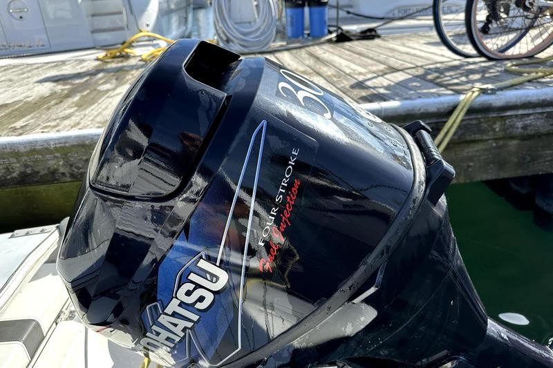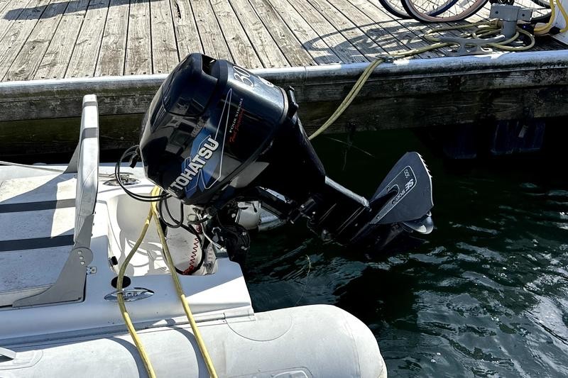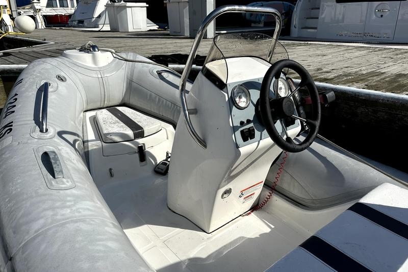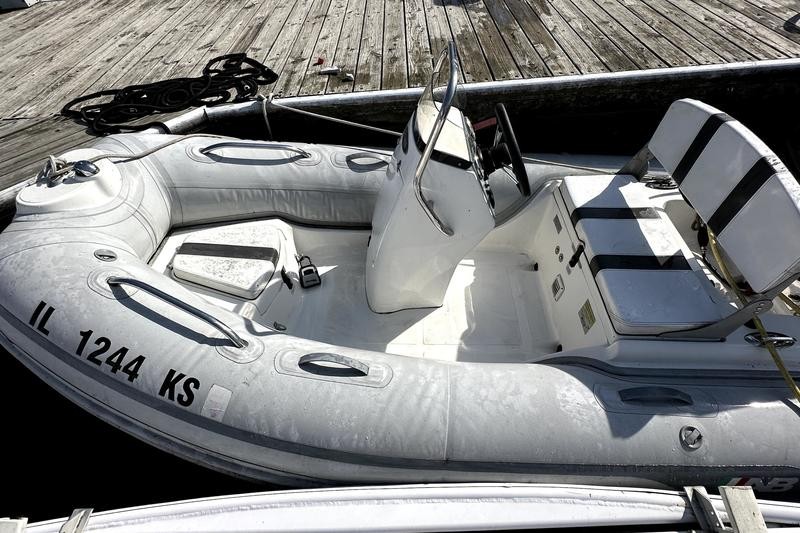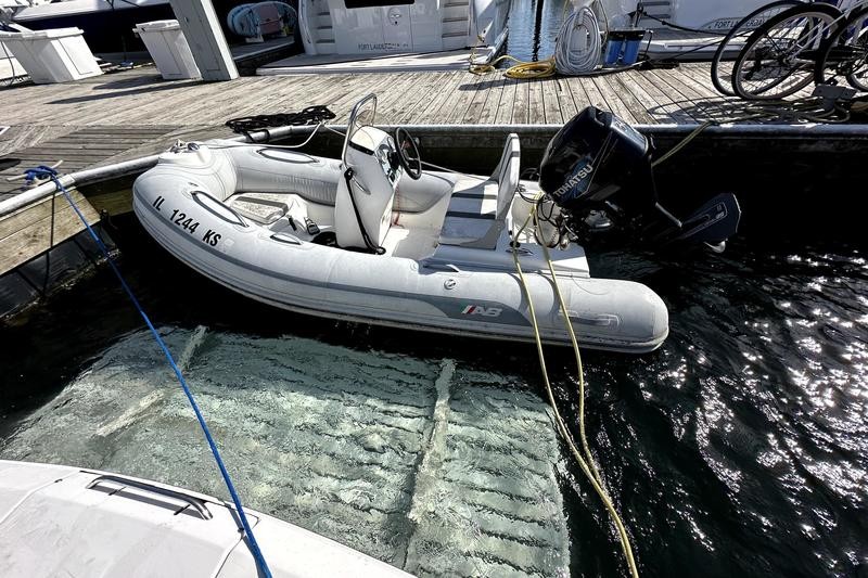 Custom hydraulic tender lift added. Dinghy pictured also available.