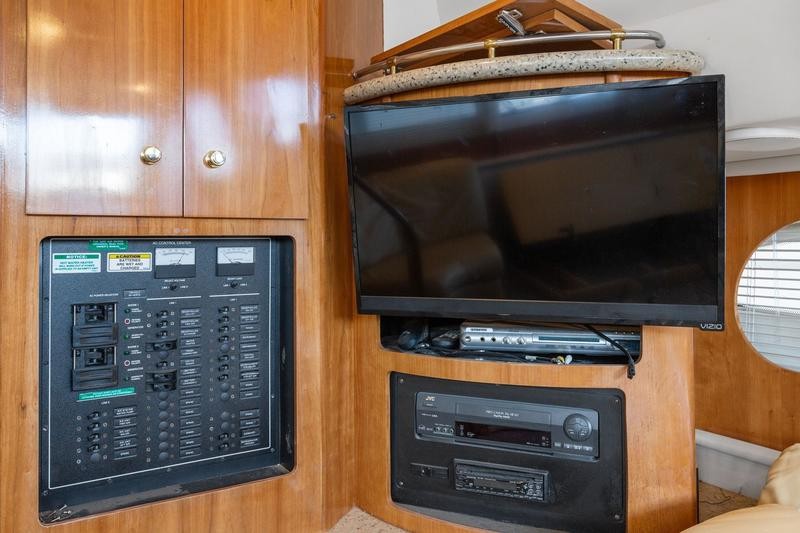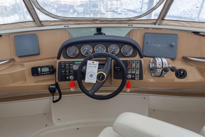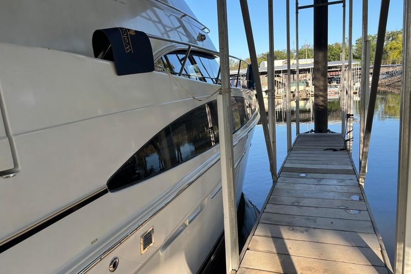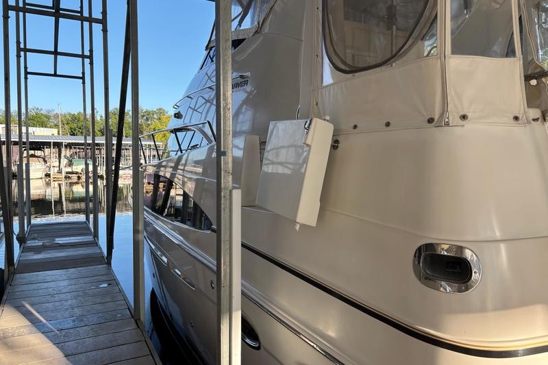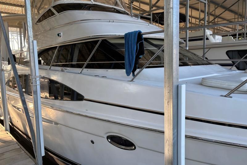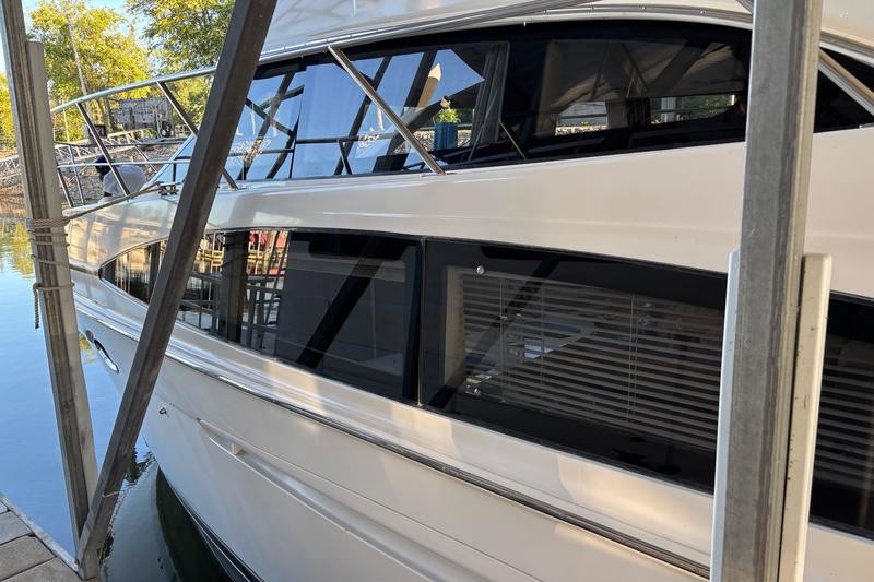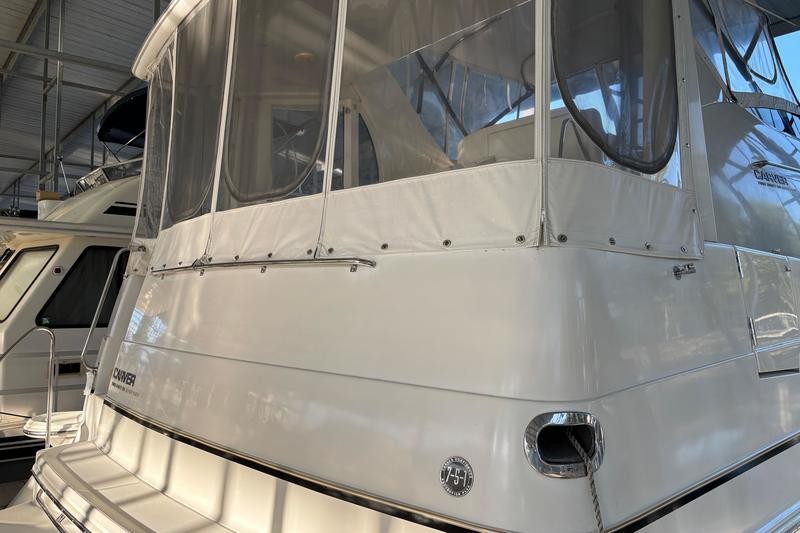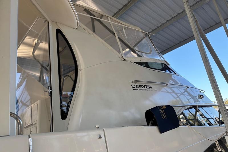 The 2001 Carver 396 Motor Yacht is a spacious and luxurious vessel designed for comfortable cruising and extended stays on the water. Its hallmark is the expansive interior layout, featuring a two-stateroom, two-head configuration that maximizes livability. The boat has a sleek yet sturdy fiberglass hull, providing stability and durability. The modern lines of the vessel are complemented by a spacious flybridge and aft deck.The elevated flybridge offers ample seating, a wet bar, and a commanding helm station with excellent visibility, making it a great space for socializing or enjoying panoramic views. The aft deck is fully enclosed with hardtop and canvas, creating a comfortable outdoor living space with easy access to the swim platform via molded steps.The salon boasts large windows for natural light, plush seating, and a well-appointed entertainment center, providing a comfortable area for relaxation. The full-service galley features a refrigerator, microwave, cooktop, and plenty of counter space and storage, making meal preparation a breeze.The master stateroom aft includes a queen-size berth, ample storage, and an en-suite head with a shower.The forward guest stateroom also features a double berth, storage, and private access to the second head. Both heads are equipped with vacu-flush toilets, vanities, and separate shower stalls for added convenience.