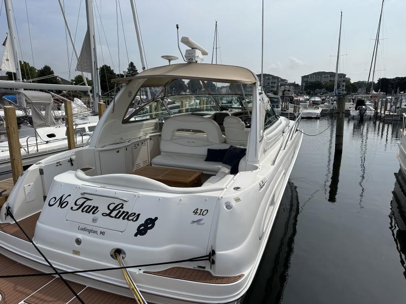 2000 Sea Ray 410 Sundancer Overview The 2000 Sea Ray 410 Sundancer is a remarkable blend of comfort, style, and performance. This particular model has been meticulously maintained, featuring new canvas, a freshly buffed and waxed exterior, and recent fluids and filter changes. The addition of Sea Dek two years ago and beautiful maple woodwork in ... [read more]