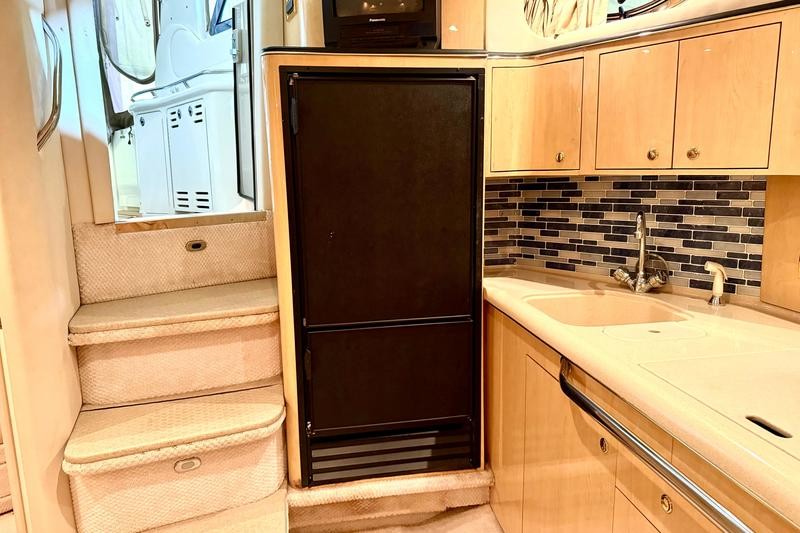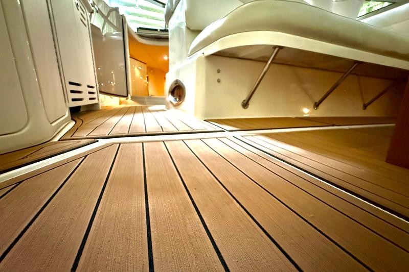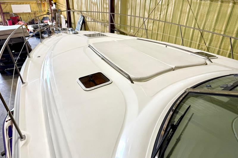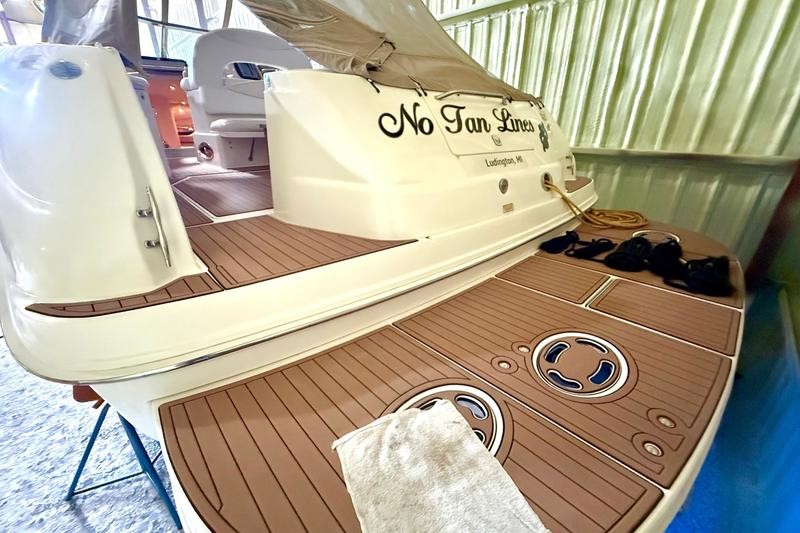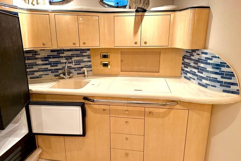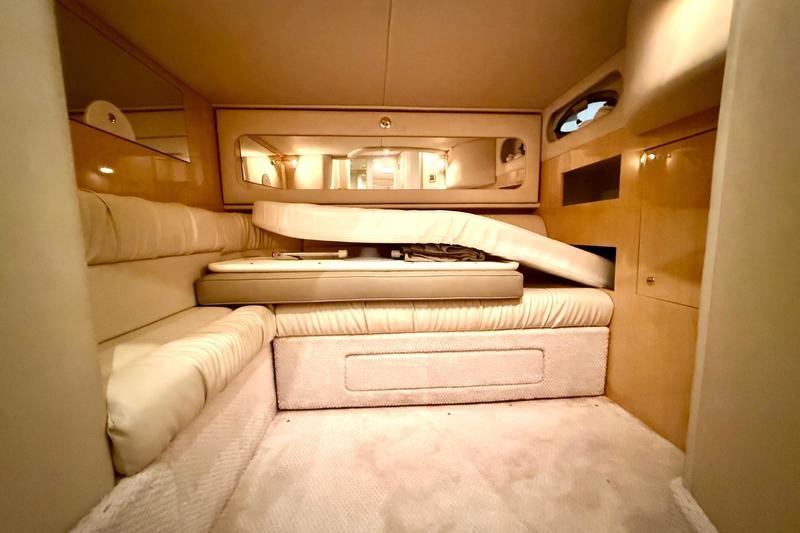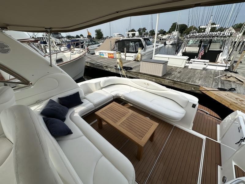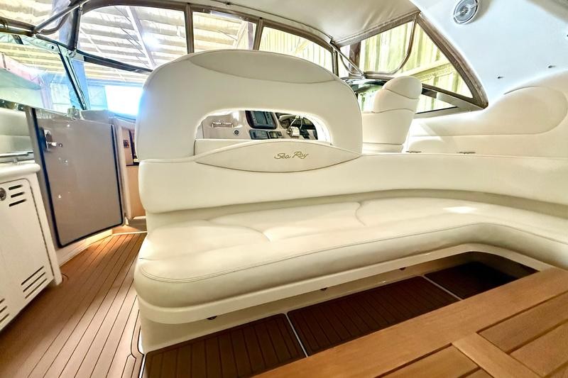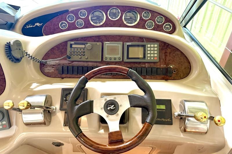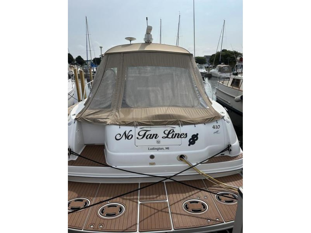 2000 Sea Ray 410 Sundancer Overview The 2000 Sea Ray 410 Sundancer is a remarkable blend of comfort, style, and performance. This particular model has been meticulously maintained, featuring new canvas, a freshly buffed and waxed exterior, and recent fluids and filter changes. The addition of Sea Dek two years ago and beautiful maple woodwork in the interior enhances both aesthetics and functionality.