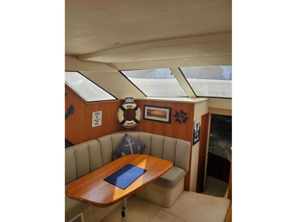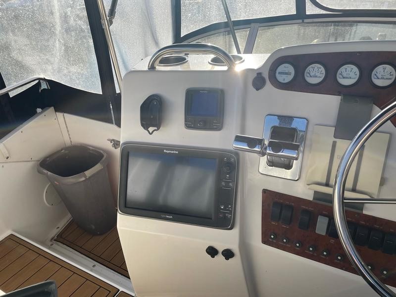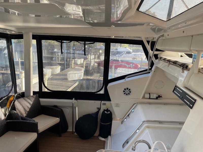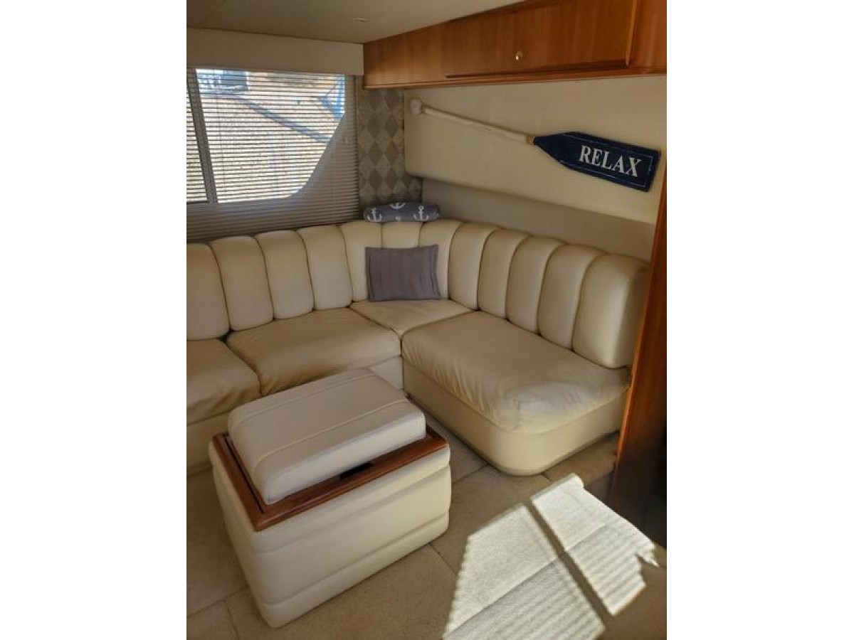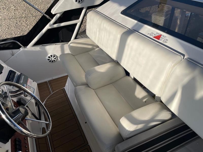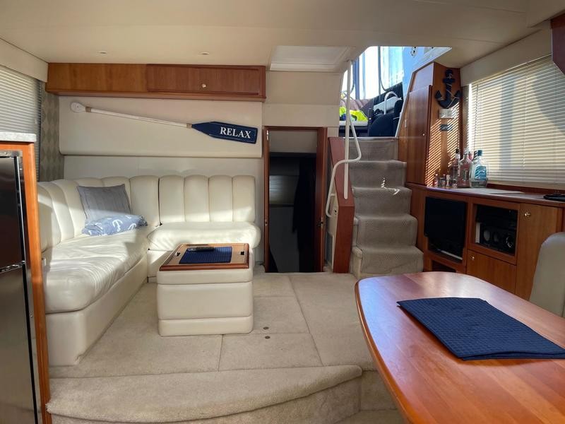 When looking for an affordable max volume cruising yacht you will find much to like in the 392 Motor Yacht. Silvertons grand design eliminating the side decks and instead opting for elevated "sidewalks" as Silverton called them, Silvertons designers were able to produce a massive interior utilizing the full 14ft 1in beam for the salon. The interior features cherry cabinetry, large Ultra Leather sofas and dinette with a full-service galley. Both staterooms have access to separate heads with full standing showers. Topside the Helm has well labeled easy to understand controls with a bench seat forward and aft of the helm counsel. The afterbeck features a hardtop, wet bar and large bench seating. Built on a solid fiberglass hull the 392 Silverton is said to cruiser around 15-16 knots and reach a top speed just over 20 knots.