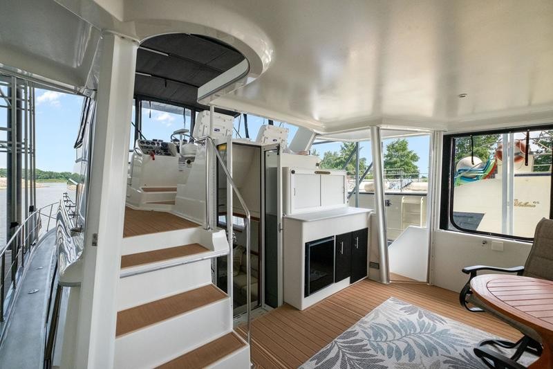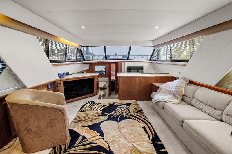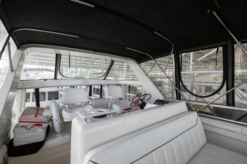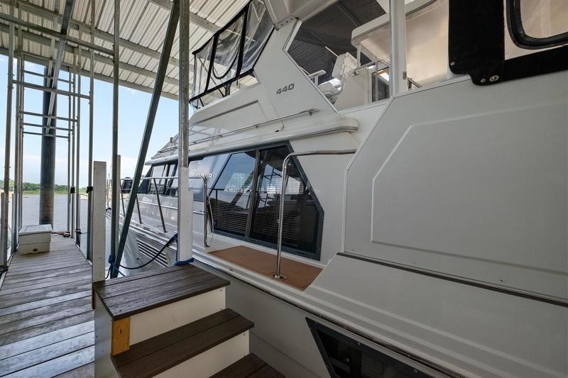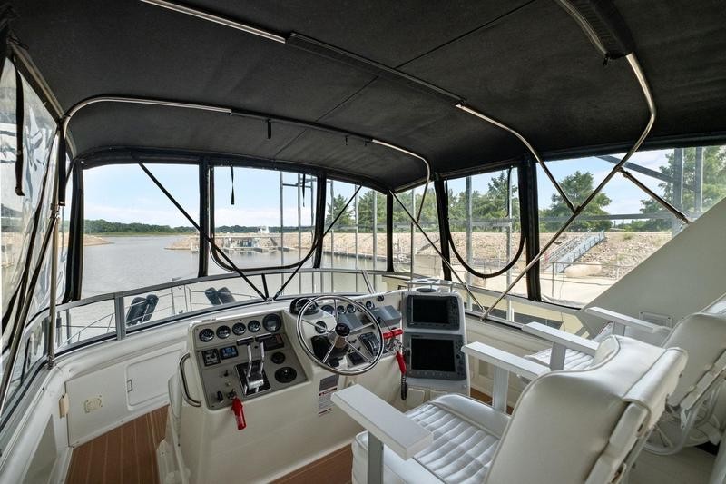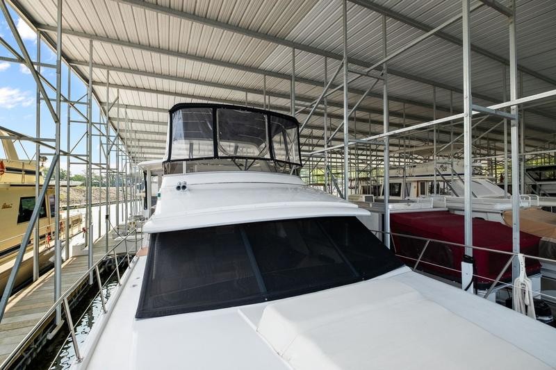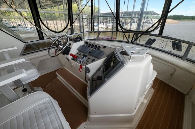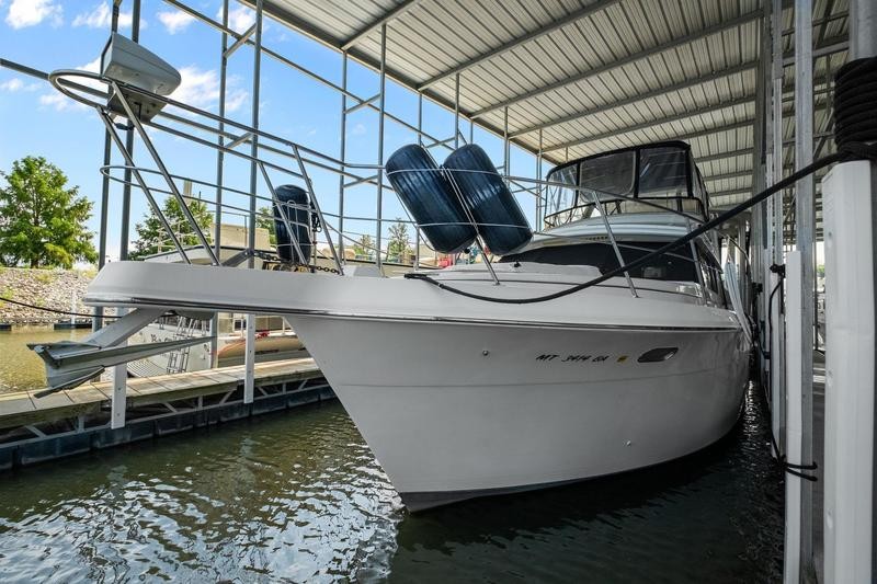 Like most Carver from this time frame the 440 is built on a solid fiberglass hull with a shallow keel for added stability. The 15ft beam offers a massive interior space not found in many boats of this size. Her traditional layout with two stateroom and two heads offers plenty of space and privacy when guest are on board it is worth noting both heads offer separate standing shower stalls. The lower galley features all the counter top space one could need with a large dinette to port. Up top you will find a smaller aft deck with enough room for some patio furniture. The bridge and helm station has plenty of fixed seating to fit a small crowd. Additional features include wide side decks, a large sun pad on the fore deck and excellent interior head room. Call today for your private showing! THis boat is located off site in St. Charles, MO