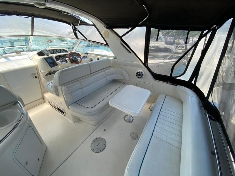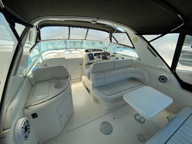 The Sea Ray 330 Sundancer stands apart from the crowd. A large, versatile cockpit and all the performance anyone ever needs in a family cruiser. The double helm seat gives captain and navigator a clear view of the wat ... [read more]