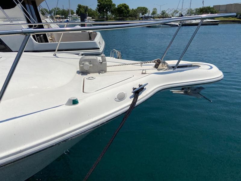 Equipment Includes: Cockpit Enclosure, Air Conditioning With Heat, Generator, Extended Swim Platform With Ladder, Windlass With Anchor Package, Enclosed Head With Vanity And Shower, AM/FM Stereo, Salon TV, Cockpit Wet Bar With Refrigerator, Refrigerator, Microwave Oven, Electric Cook Top, Fire Extinguisher, Compass, Remote Spotlight, VHF Radio, Depth Finder, Radar, Bilge Pump, Bottom Paint, Trades Welcome.