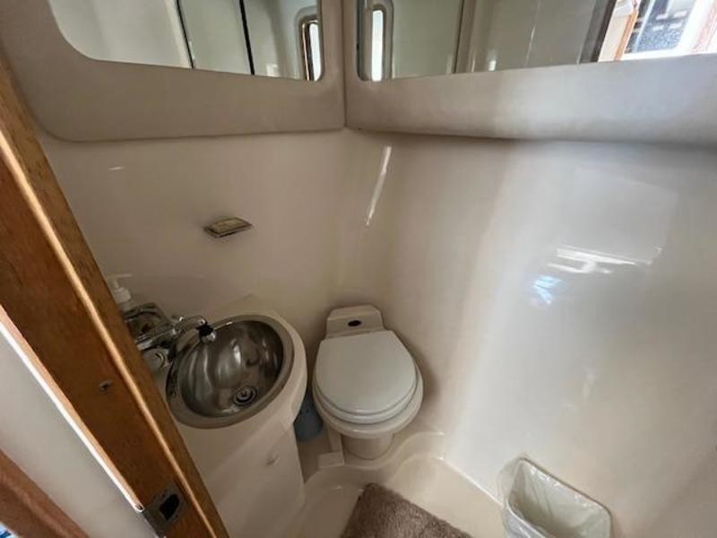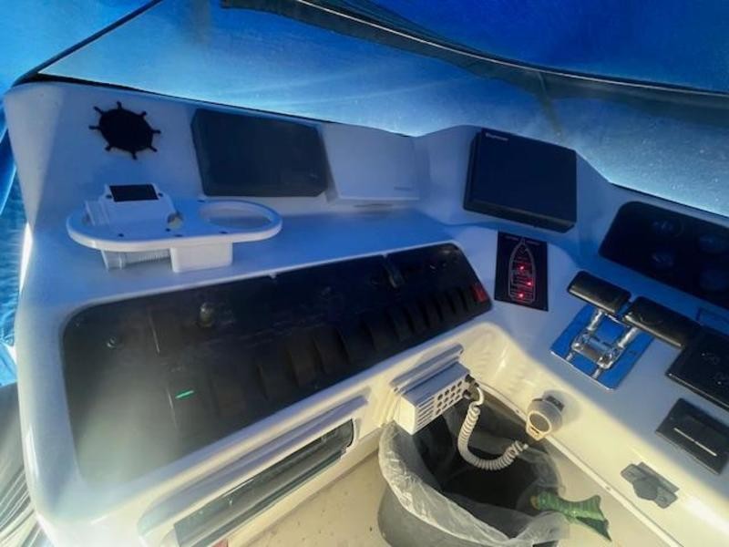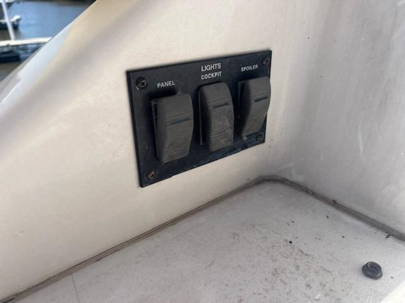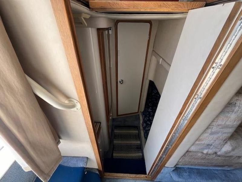 The aft cockpit area is accessed by one of two transom access points located port and starboard. You will also find a built in fish box and live well for those that wish to pursue the bounties of the sea! There are also additional storage lockers as well as access to the machinery spaces located below through a hatch in the floor.