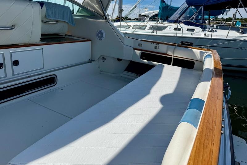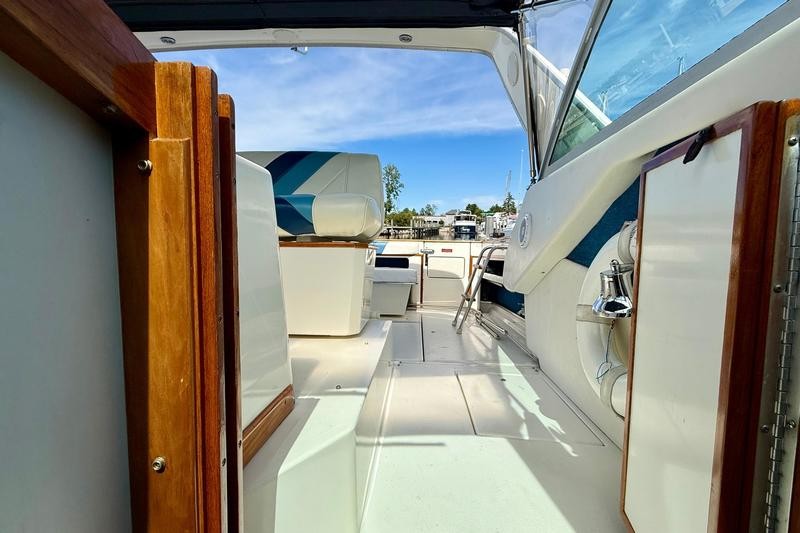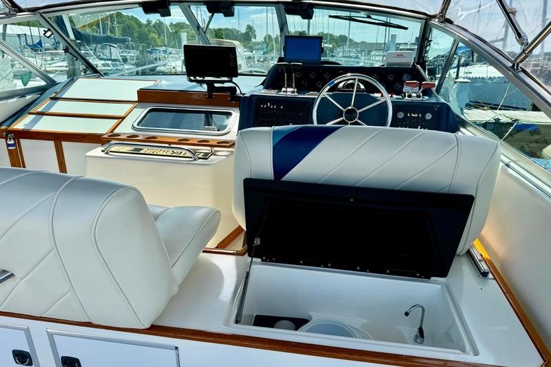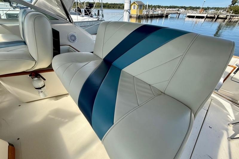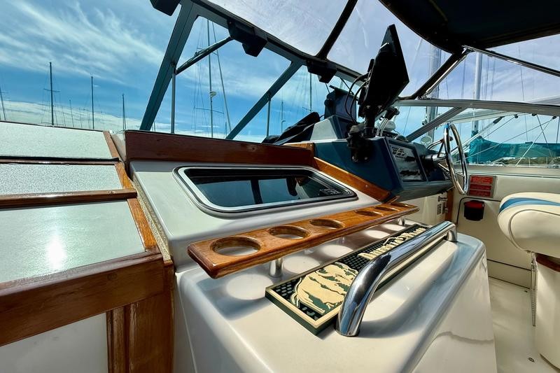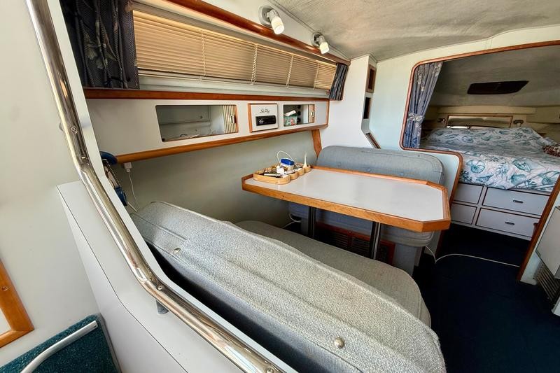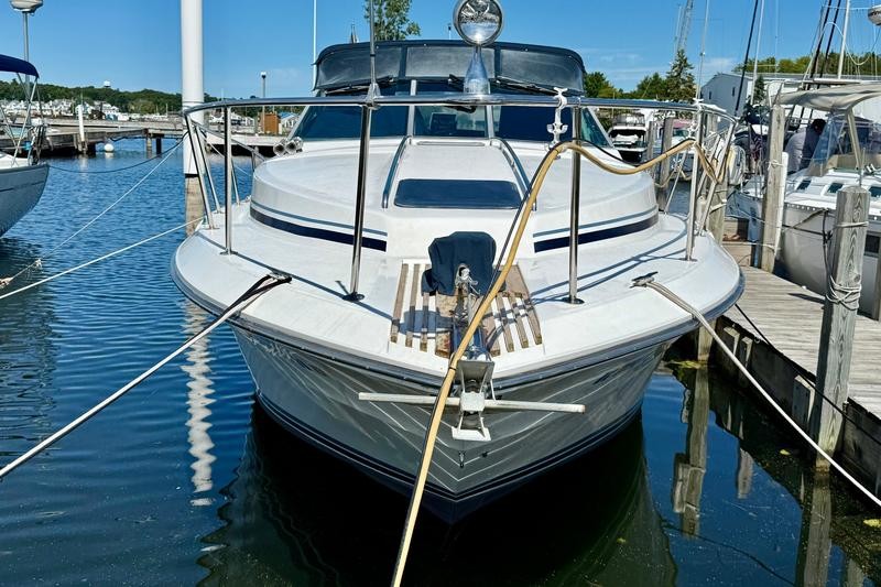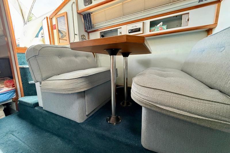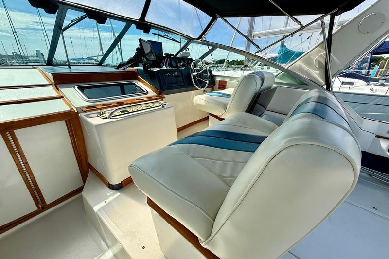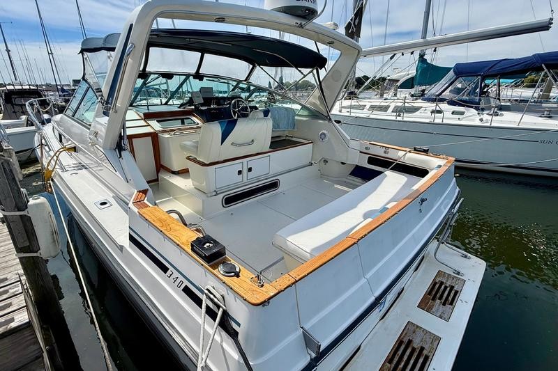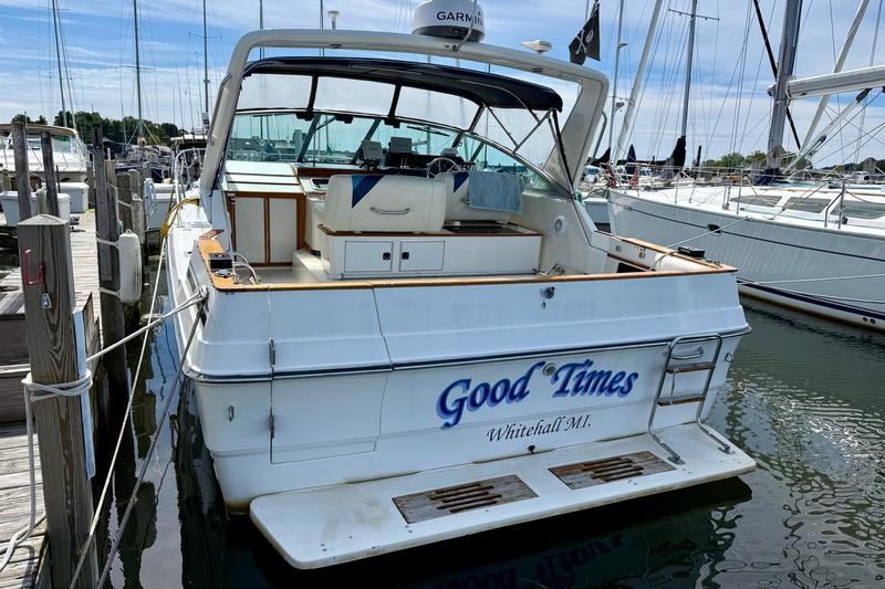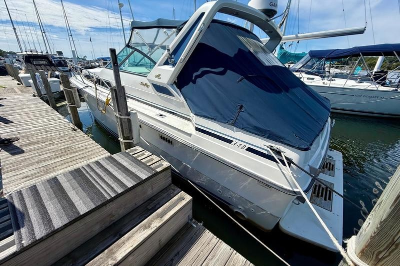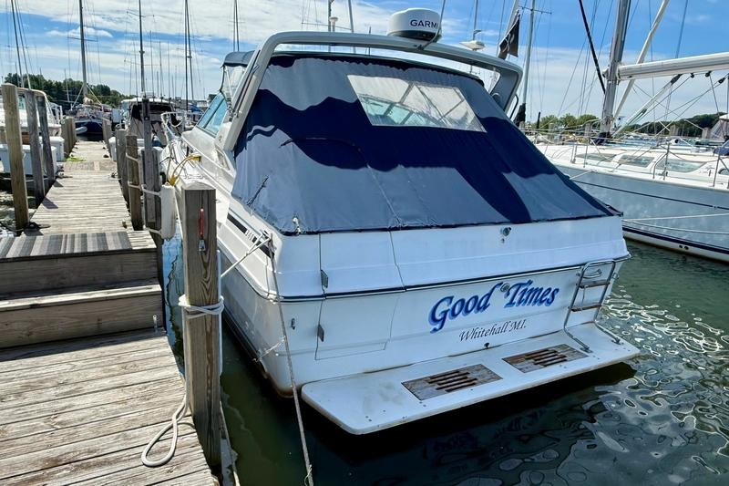 This particular 340 Sundancer has been well cared for and shows pride of ownership. Her roomy cockpit with double helm seating, aft-facing lounge, and convertible transom seating makes her ideal for entertaining guests dockside or while cruising. Below, the inviting cabin layout features a fully equipped galley, a private forward stateroom, convertible dinette, and a mid-cabin lounge that converts to an additional berth - allowing comfortable overnight accommodations for up to six.