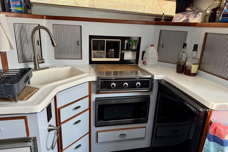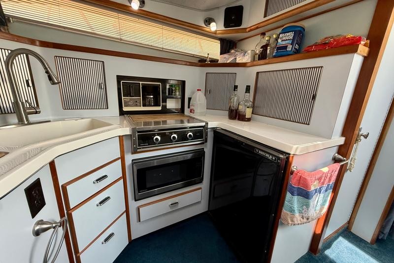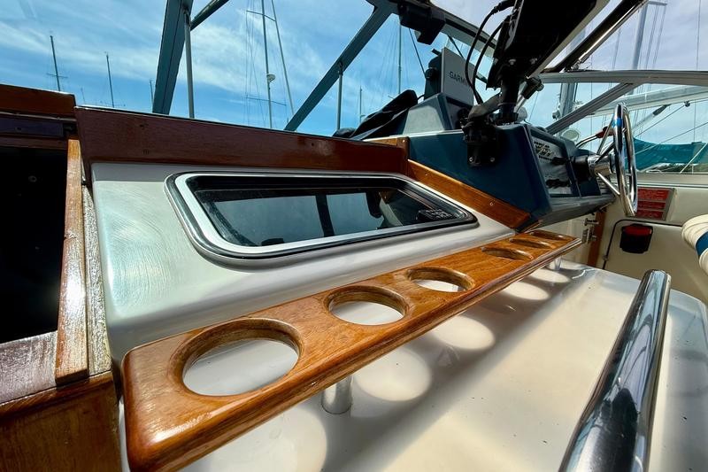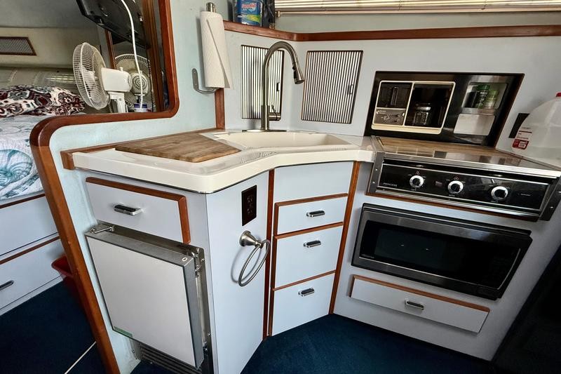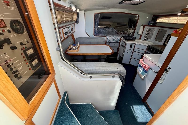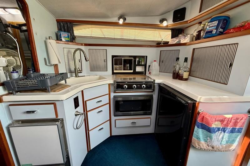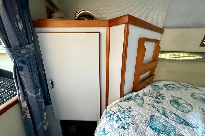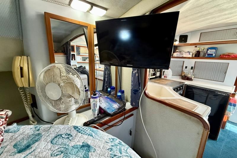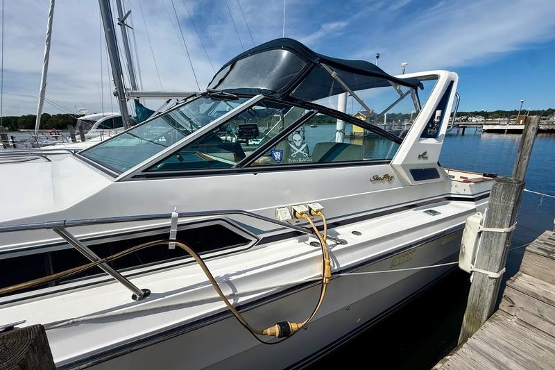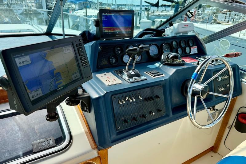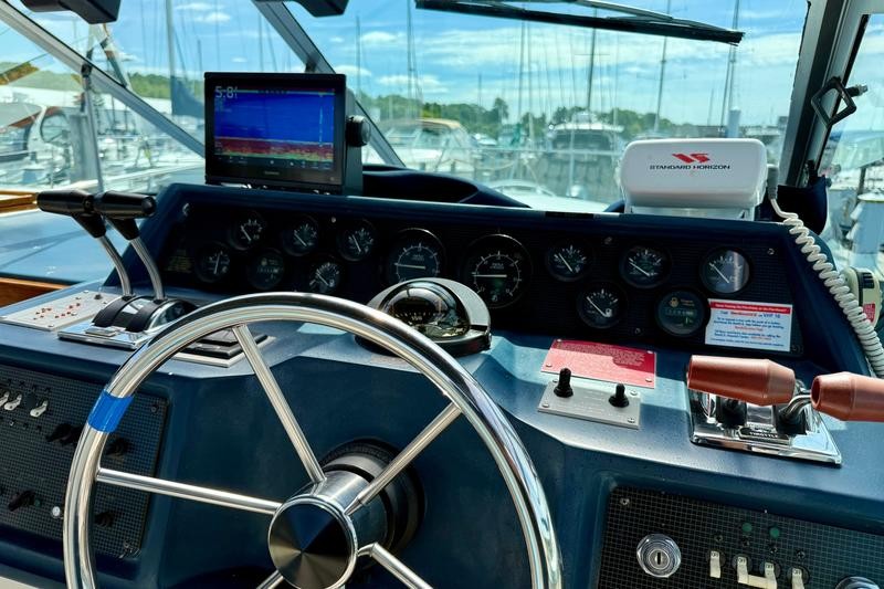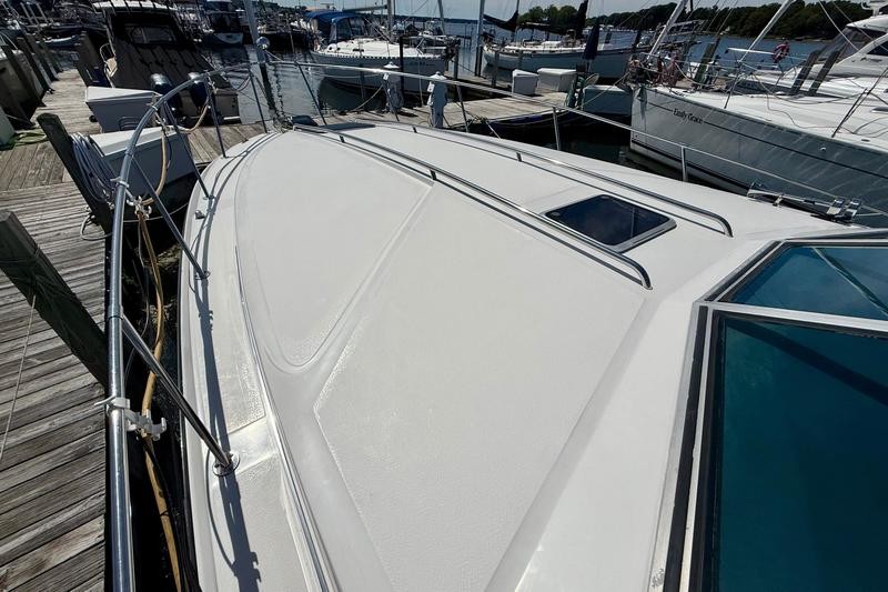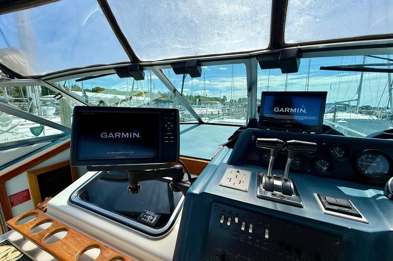 This particular 340 Sundancer has been well cared for and shows pride of ownership. Her roomy cockpit with double helm seating, aft-facing lounge, and convertible transom seating makes her ideal for entertaining guests dockside or while cruising. Below, the inviting cabin layout features a fully equipped galley, a private forward stateroom, convertible dinette, and a mid-cabin lounge that converts to an additional berth - allowing comfortable overnight accommodations for up to six.