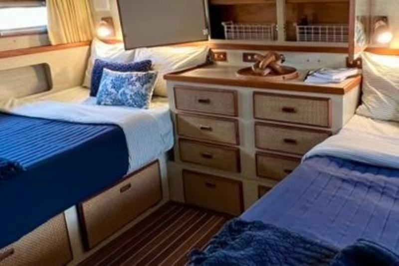 “Gadabout? is a classic Bertram 42 Motor Yacht. She has enjoyed her lifetime in freshwater. There is a huge v-berth forward followed by a large hanging locker to starboard. There is a central vacuum in this locker. To port is a siz ... [read more]