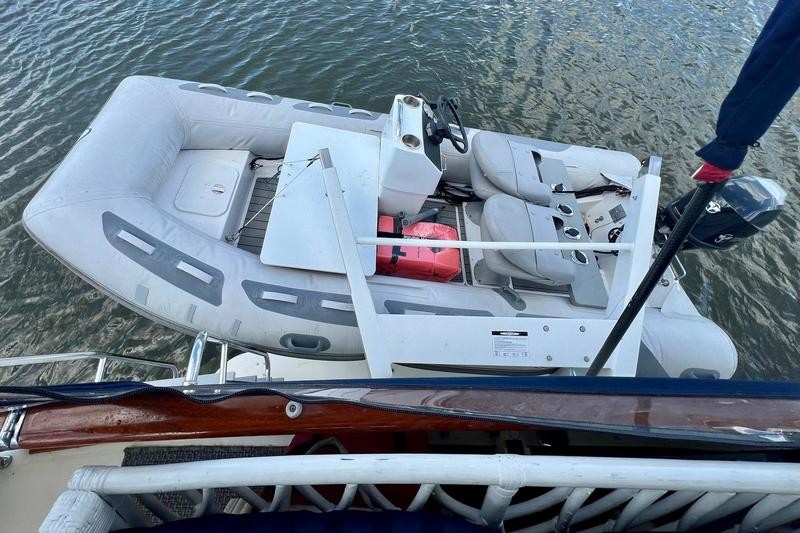 The full width cockpit is comfortable underway. It has a full canvas enclosure that has zip up windows for total circulation. The cockpit is a joy at anchor or underway in any weather conditions.