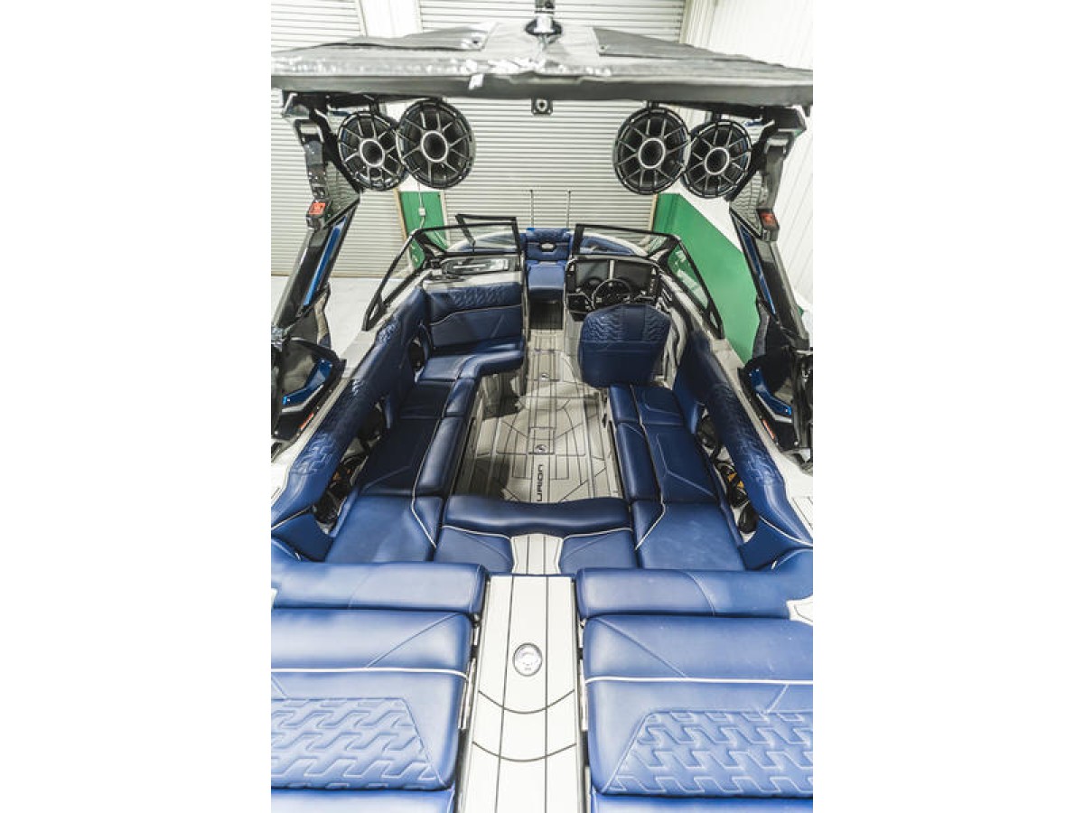 All Ri Series models are designed as flagships, but the Ri230 hits that sweet spot for wake sports enthusiasts seeking top-tier performance at the most sold size in our industry, 23 feet. The Ri230 offers unheard-of accommodation, like deep, comfortable seating and the available Predator Power Tower (PPT) that adds convenience and presence. The intuitive Captive Touch Side by Side High-Definition Dash System puts control where you want it, while the Range of View (ROV) system lets the driver monitor everything from the water ahead to the rider in tow to fuel consumption detail. The Ri230 also features four wireless clamping phone chargers, limo lighting beneath the three-position slide seat, the Lit throttle, and external plug-in access for battery charging. It’s clear Centurion is listening to what boaters want, even before they ask. With room for up to 14 people, the Ri230 doesn’t just deliver the best waves, wakes, and ride in the world—it does it with a level of style and refinement that sets it apart. Buy it for the performance, enjoy it for the luxury. You really can have it all.