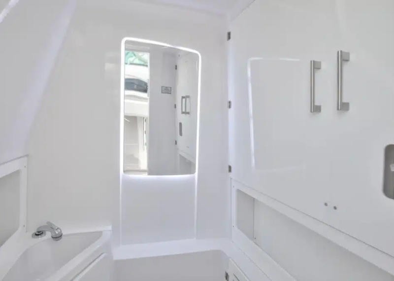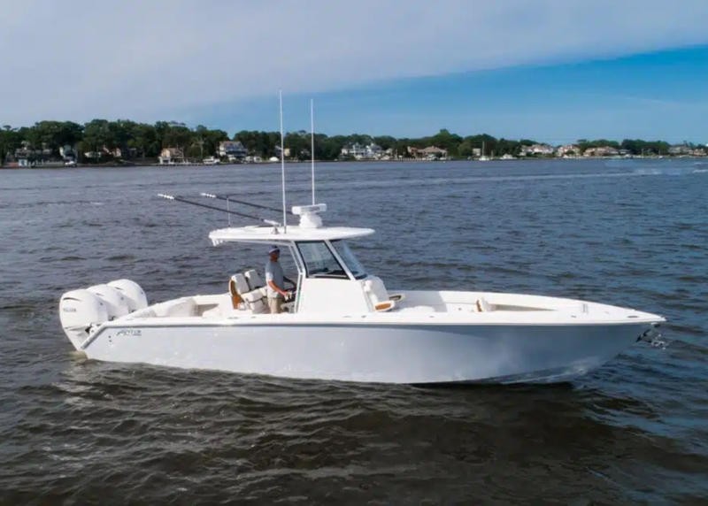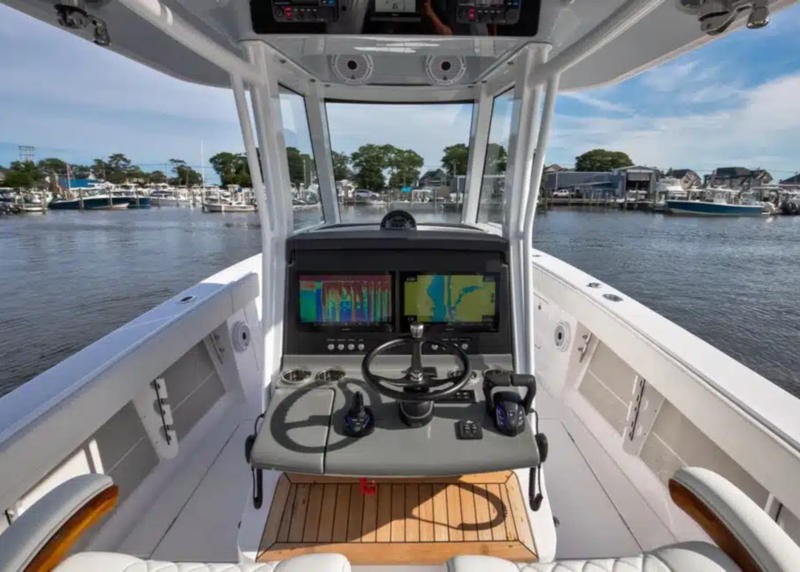 Prepare yourself for a new era of excellence with the all-new 340LS. Our team has committed countless hours to researching and incorporating the latest and greatest advancements in marine technology and usability for this exquisite model. Merging the realms of luxury and sport, this singular vessel epitomizes a seamless blend of aesthetics and functionality. The 340LS inherits the proven hull of our esteemed 34 model while embracing the sleek modern console of a true sportfisher. The helm exemplifies a commitment to efficiency, featuring easily accessible battery access, a 3-piece enclosed glass windshield, and exquisite teak accents. This yacht-inspired design ensures not only an attention-grabbing presence on the water but also comfort for all passengers. Prepare to step up your Jupiter experience with the perfect fusion of all the best features in one seminal model.