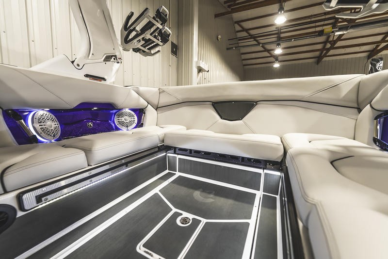 With its 20 degrees of deadrise at the transom, the Opti-V Hull displaces more water, before any extra weight is added, while preserving a great rough water ride. At each corner of the transom a flat triangle extends towards the bow creating lift along the rear half of the boat for a level running attitude, front to back as well as side to side. Due to this balanced design, the Opti-V Hull enhances fuel economy and provides a much quieter ride than most boats delivering this type of power. With hook built into the rear edge of the delta pad, the seated driver can see over the bow while pulling a rider without compromising the waves or wakes thanks to a level running attitude. The hull also deflects rollers, at the bow and transom, so big water can’t spoil your fun. It’s clear the Opti-V Hull delivers the best waves, wakes and ride - in all conditions.
