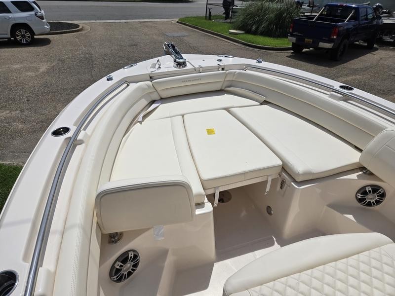 The most feature-rich 23-foot center console, Grady-White’s Fisherman 236 is a superior fishing boat and more family friendly than any competitive models. Standard features that make this boat remarkable include a 15.5-gallon livewell, an oversized enclosed head, and a transom door that makes it easy to board fish or get in and out of the water from the swim platform. Grady’s patented seating designs add comfort for up to 10 passengers. From the bow seating with forward facing foldaway backrests to the foldaway aft bench seat, there’s room for everyone.