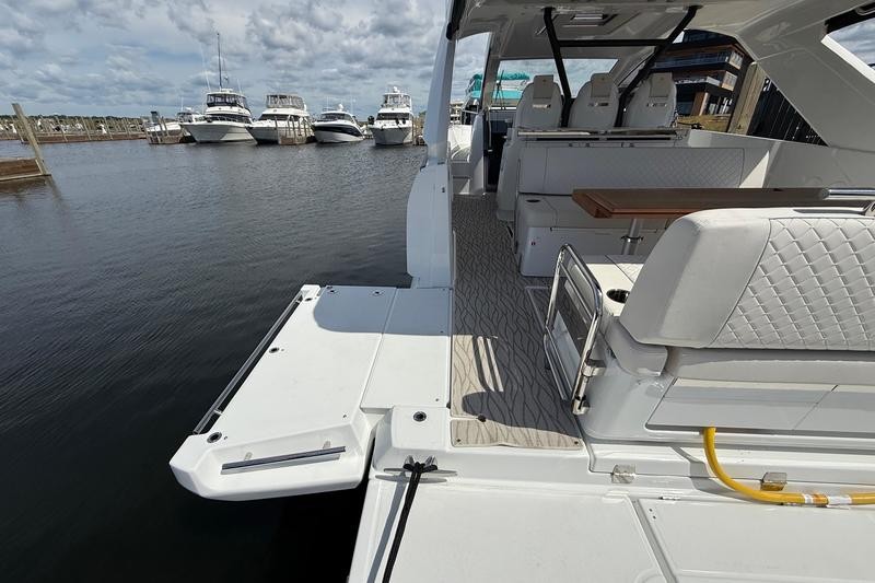 The DB/37 OB offers exceptionally fluid movement on board. At anchor, her side terraces can be deployed for even more space on board. Access to the sea is also facilitated by her vast aft swim platform. Gathered around the cockpit table in the saloon, guests enjoy an uninterrupted field of view, open to the scenery and the horizon. Parties, dinner with friends, or soaking up the warmth of the sun between dives… the choice is yours. But that’s not all: designed for shared pleasures, this day boat invites you to extend your cruise, with her two bright and comfortable, spacious cabins.