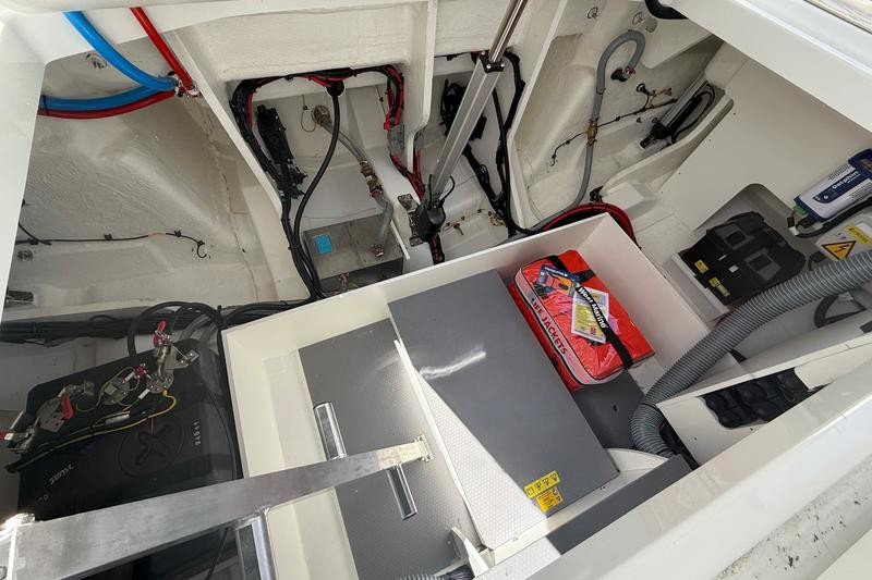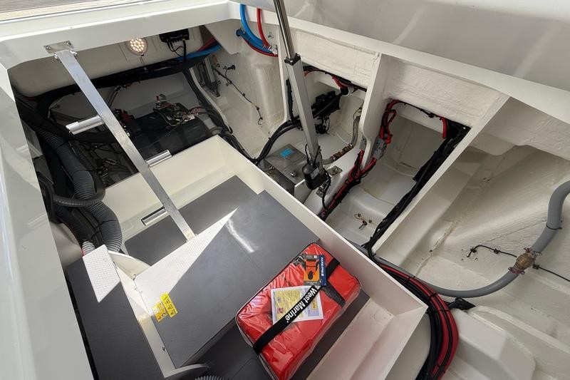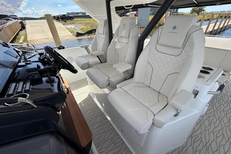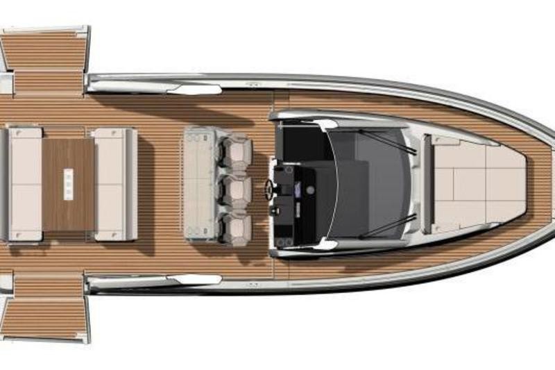 Passengers are not forgotten aboard this sporty, yet protective boat, with a wide, integrated windscreen, two comfortable seats beside the pilot, two modular facing bench seats, which can be removed for an opening onto the sea… and for those who love the sea spray, a sundeck in the forward cockpit is accessible via two perfectly secure, recessed side decks.