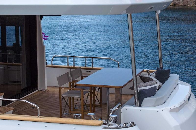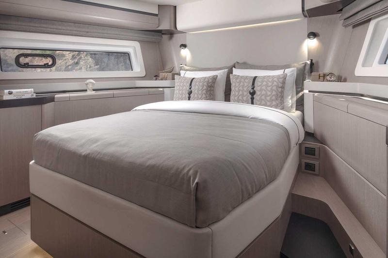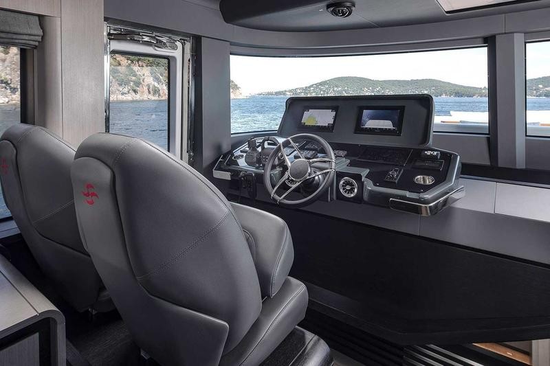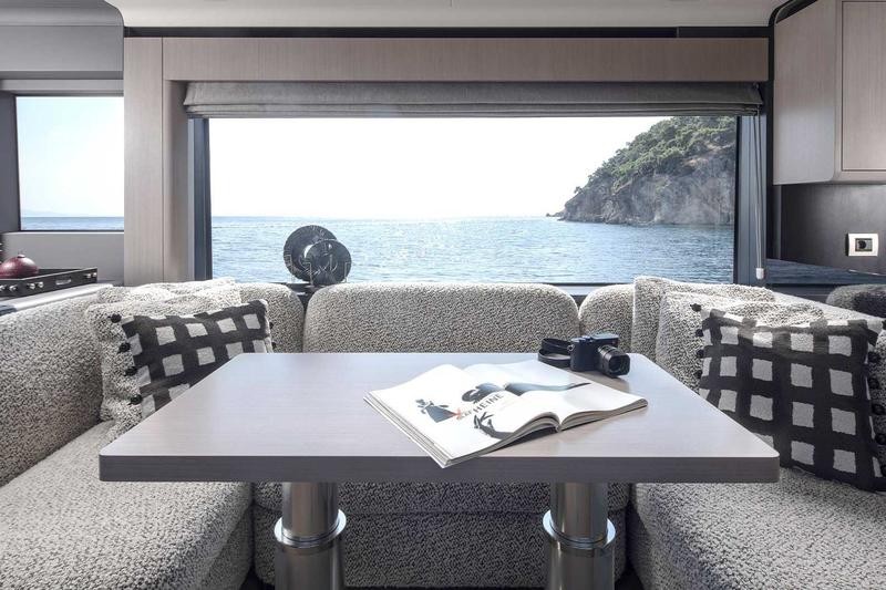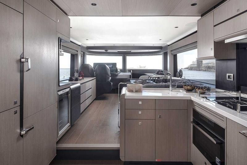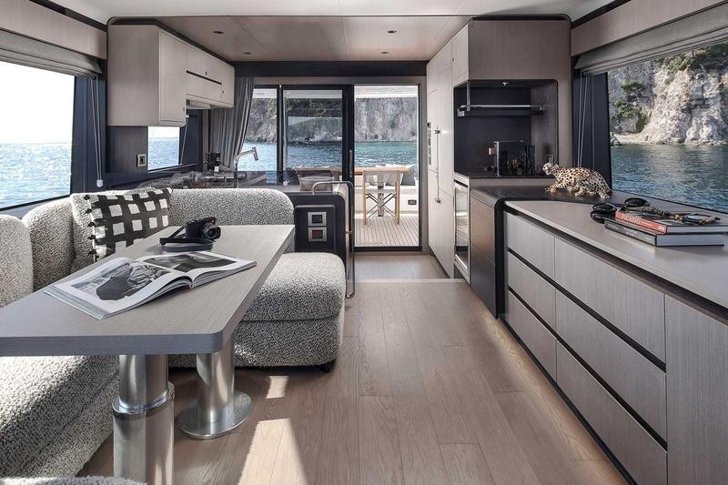 Step inside to a bright, open salon and galley that instantly feel like home. Expansive windows flood the space with natural light, while refined finishes and thoughtful details elevate every moment on board. Whether hosting guests or enjoying a quiet cruise, it’s a space designed to bring people together.