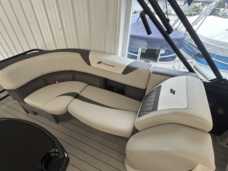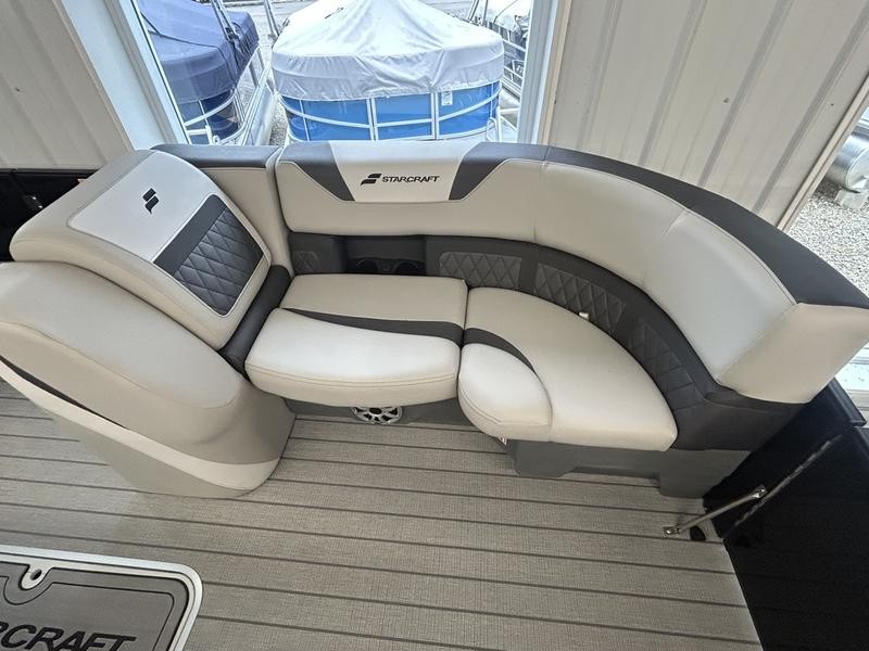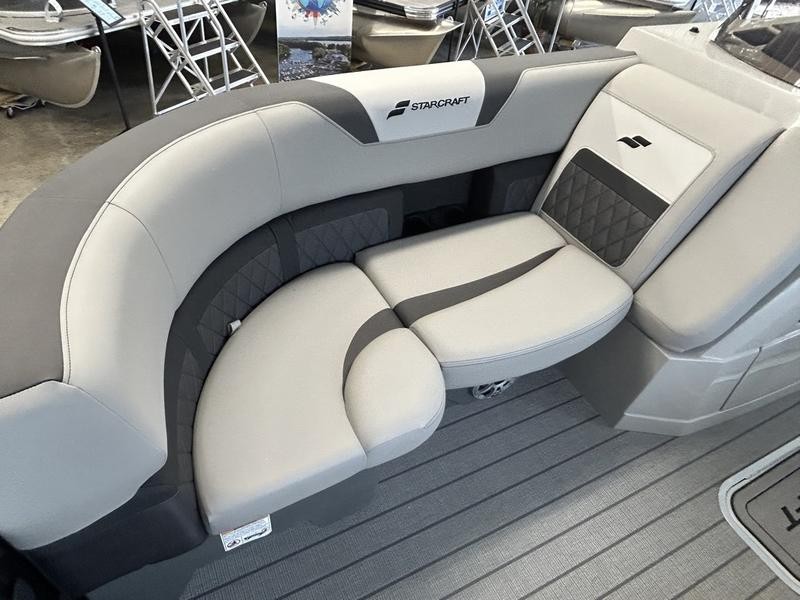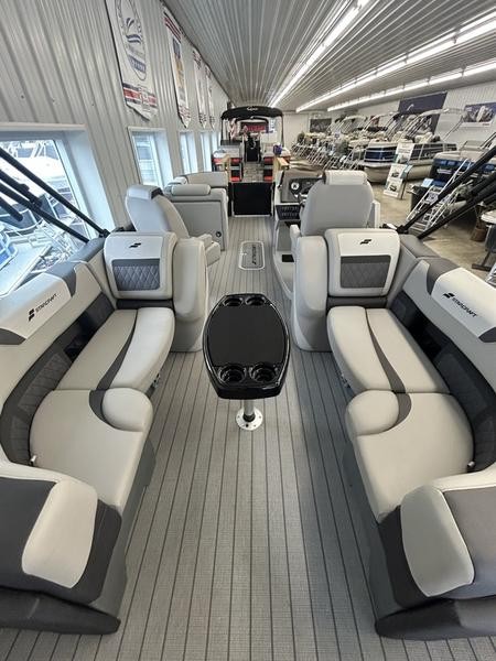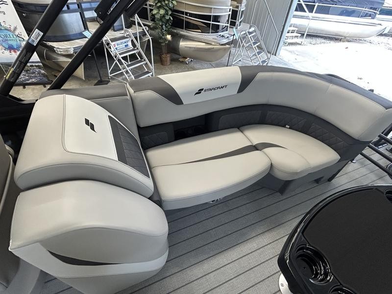 The Starcraft Pontoon SLS 3 is an excellent choice for those looking to blend comfort with performance on the water. Featuring the standard HMX Third Tube Performance Package, this pontoon delivers improved stability and agility, ensuring smooth navigation and exhilarating rides. The rear wrap-around lounges provide generous seating, making it the perfect spot for relaxation and socializing with family and friends. With its stylish design and thoughtful amenities, the SLS 3 guarantees that every outing is enjoyable and memorable, whether you’re cruising the lake or hosting a fun day in the sun.